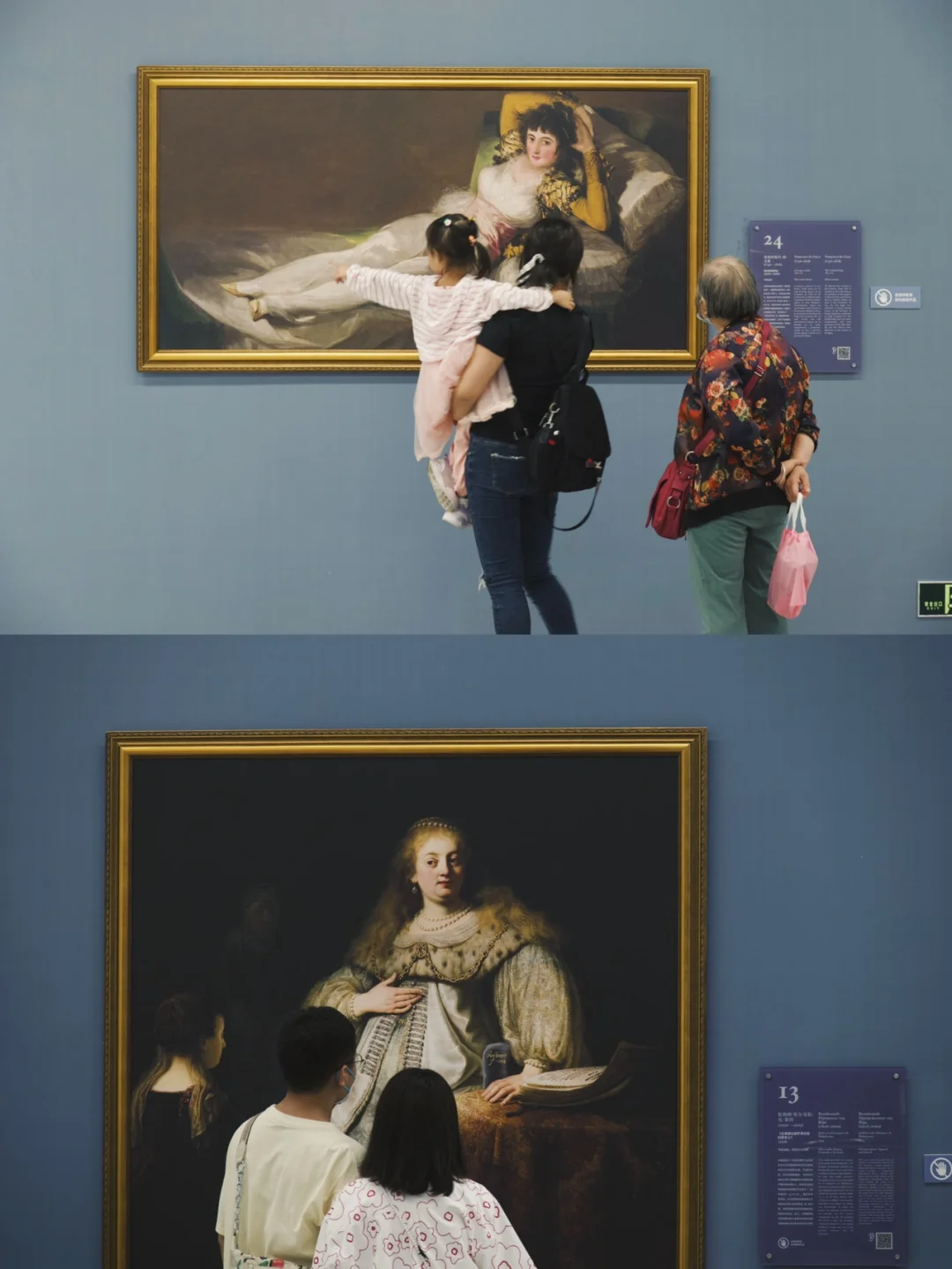 👀本次展出的作品中世界三大名画展了一个半🤣,分别是委拉斯凯兹的《宫娥》以及《蒙娜丽莎》(现在展出这幅据说是达芬奇工作坊创作的早期复制品,非达芬奇的原画),还有一幅名画是伦勃朗的《夜巡》(现场未展)。