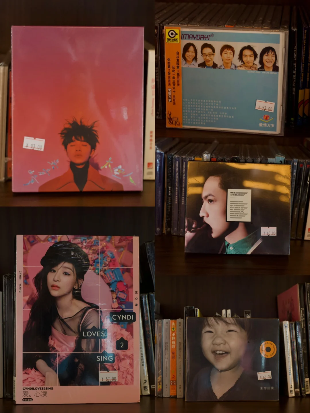 💽唱片:CD和黑胶均有,主要以华语和欧美为主,华语有周杰伦、邓丽君、五月天、陈绮贞、刘若英、李宗盛、林忆莲、王心凌、陈奕迅、张学友、赵传、林宥嘉、莫文蔚、李荣浩、吴青峰等等。因唱片店与摩登天空☁️有合作,所以摩登天空旗下的艺人的专辑还是比较全的:新裤子👖、五条人、旅行团、苏阳、尧十三、声音碎片、达闻西、痛仰、万晓利等等都有。