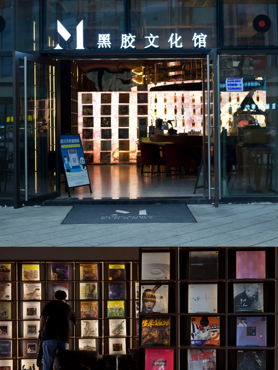 之前路过城市音乐厅很多次,很少注意到旁边还有这样一个黑胶💽文化馆,这家是深圳某大型黑胶生产商落地成都的一个音乐文化综合空间。馆内👨🎨装潢色调、装饰、布局都与黑胶有关,店内分为Livehouse活动区、黑胶产品展示区、调酒吧台、黑胶文化长廊、下午茶☕️空间等五个空间。