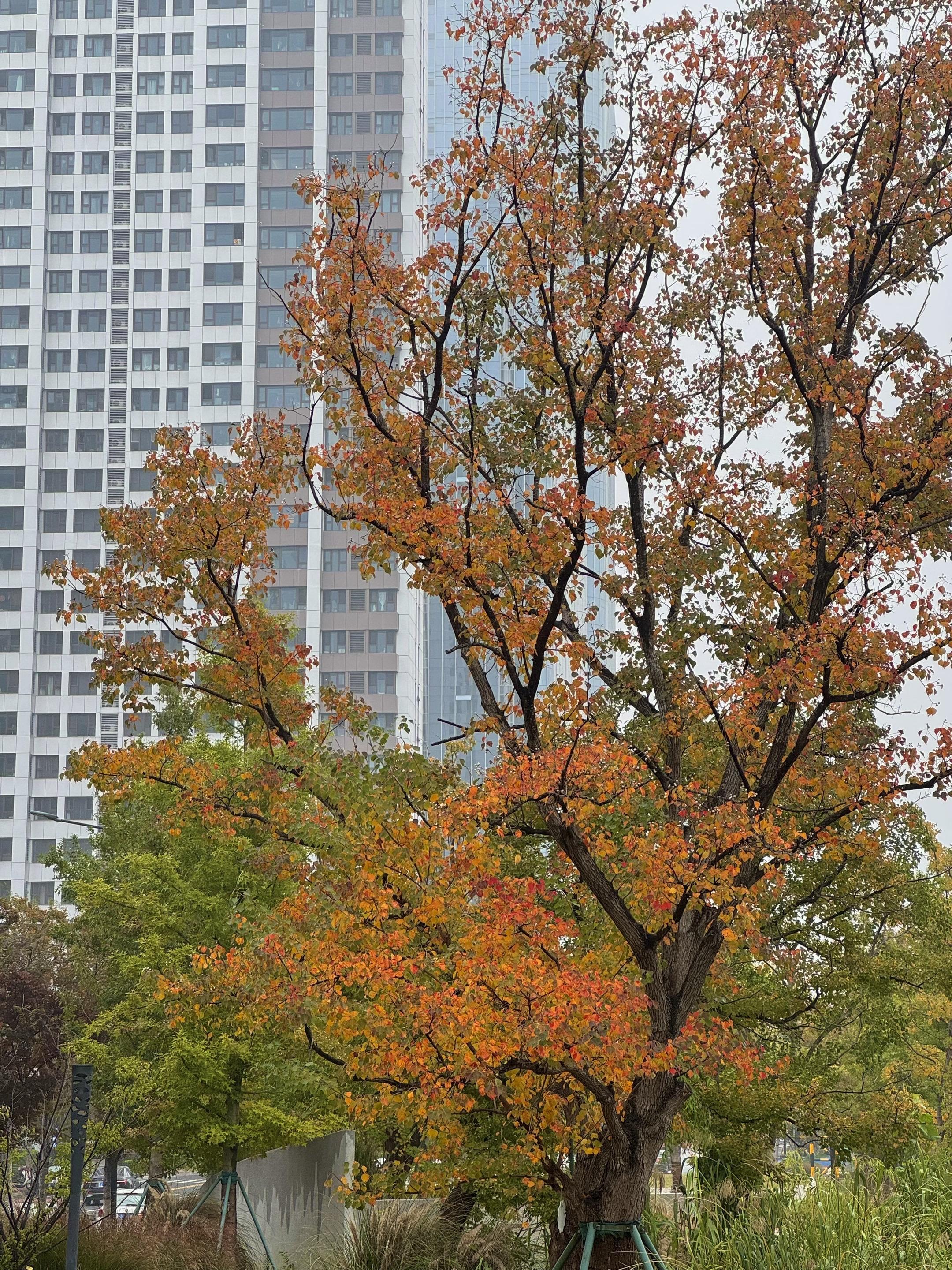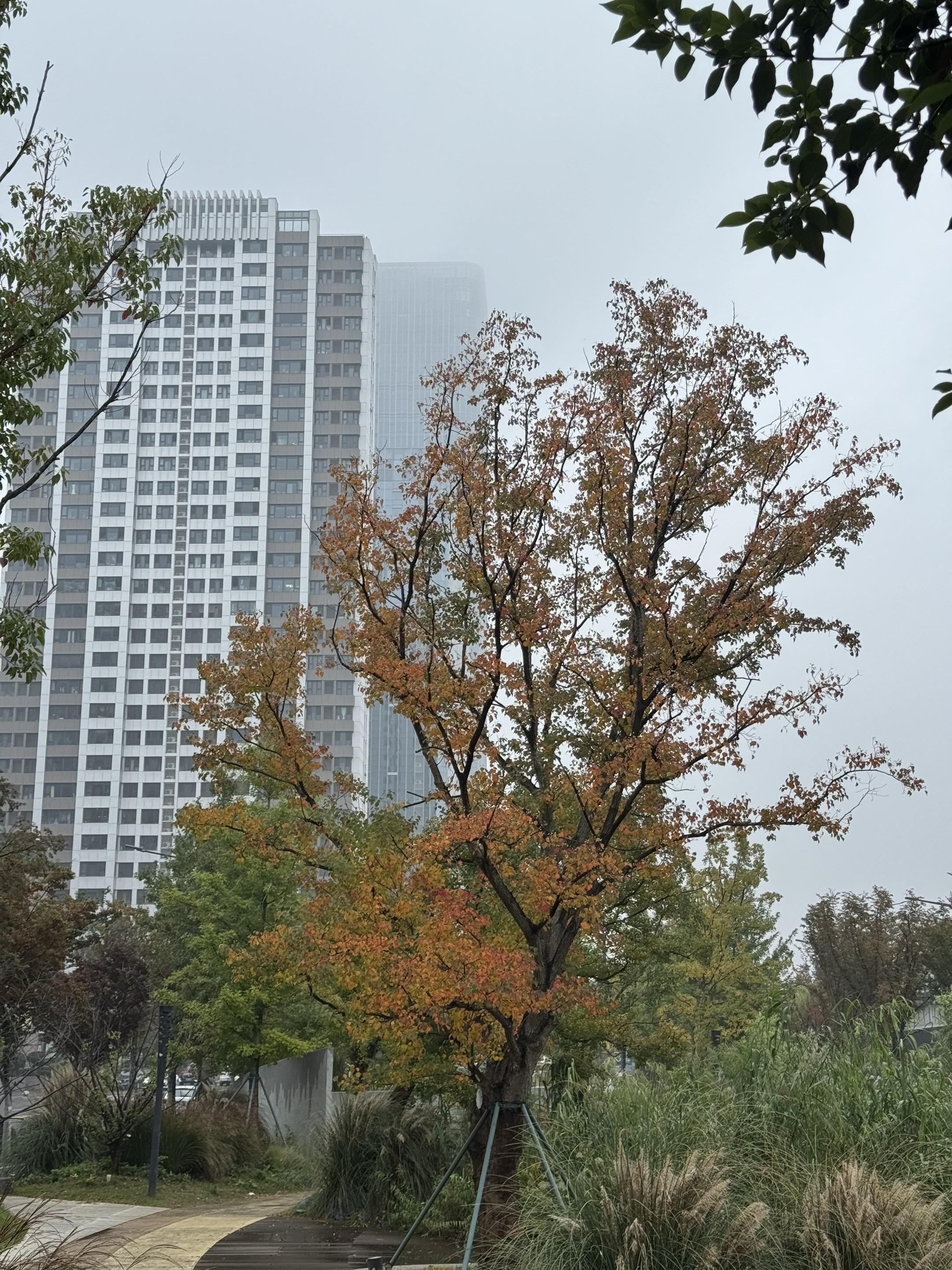 我又看到了那棵漂亮有生命力的树。今天看到了它的牌子,知道了它叫“乌桕”
