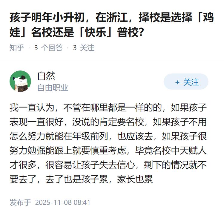 孩子明年小升初,在浙江,择校是选择「鸡娃」名校还是「快乐」普校?