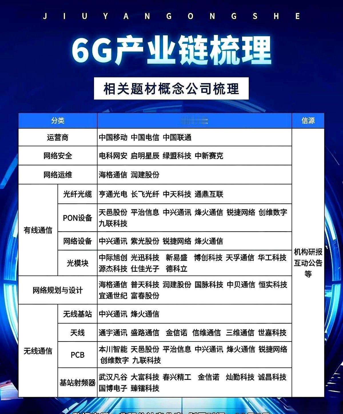 跟你说个事儿,你可能都不信。 当你还在纠结5G套餐哪个更划算的时候,人家已经不声不响地,把6G的整个“宇宙”都给你规划好了。 不是画饼,是真的在干。 从天上的卫星,到地下的光缆;从你手里那个小小的手机,到大山深处庞大的基站。 每一个环节,每一根毛细血管,每一个神经末梢,全是我们自己的人,自己的公司,在埋头干。 这已经不是某个公司单打独斗了,这是一个“军团”。 做光模块的,做天线的,搞网络安全的,铺光纤的……一个完整的“全家桶”。 人家把地基、钢筋、水泥、水电管道,全都给你备齐了,就等一声令下,直接起高楼。 很多人对6G没概念,觉得不就是网速快点嘛? 格局小了。 这玩意儿说白了,是下一个时代的“操作系统”。 是万物互联的“空气和水”。 是未来所有规则的话语权。 别人还在开会画PPT,我们已经撸起袖子,把砖头一块一块地砌上去了。 这种感觉是什么? 就是一种踏实。 一种“方向盘握在自己手里”的笃定。 未来几十年,世界的牌桌怎么玩,很大程度上,就看这些今天我们看不见的“地基”,打得有多深,有多牢。 这事儿,值得一个大写的服。