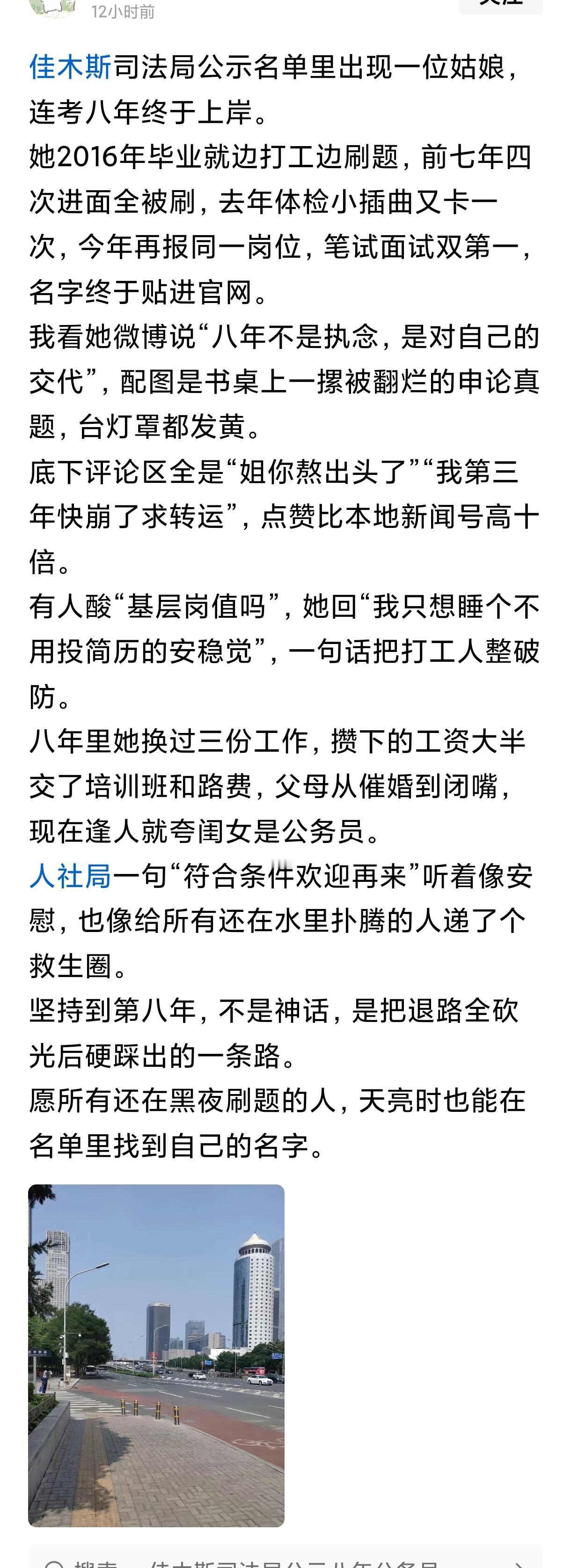 女生连考八年终于上岸佳木斯司法局,这是功夫不负有心人吗?还是水平次到要考8年?