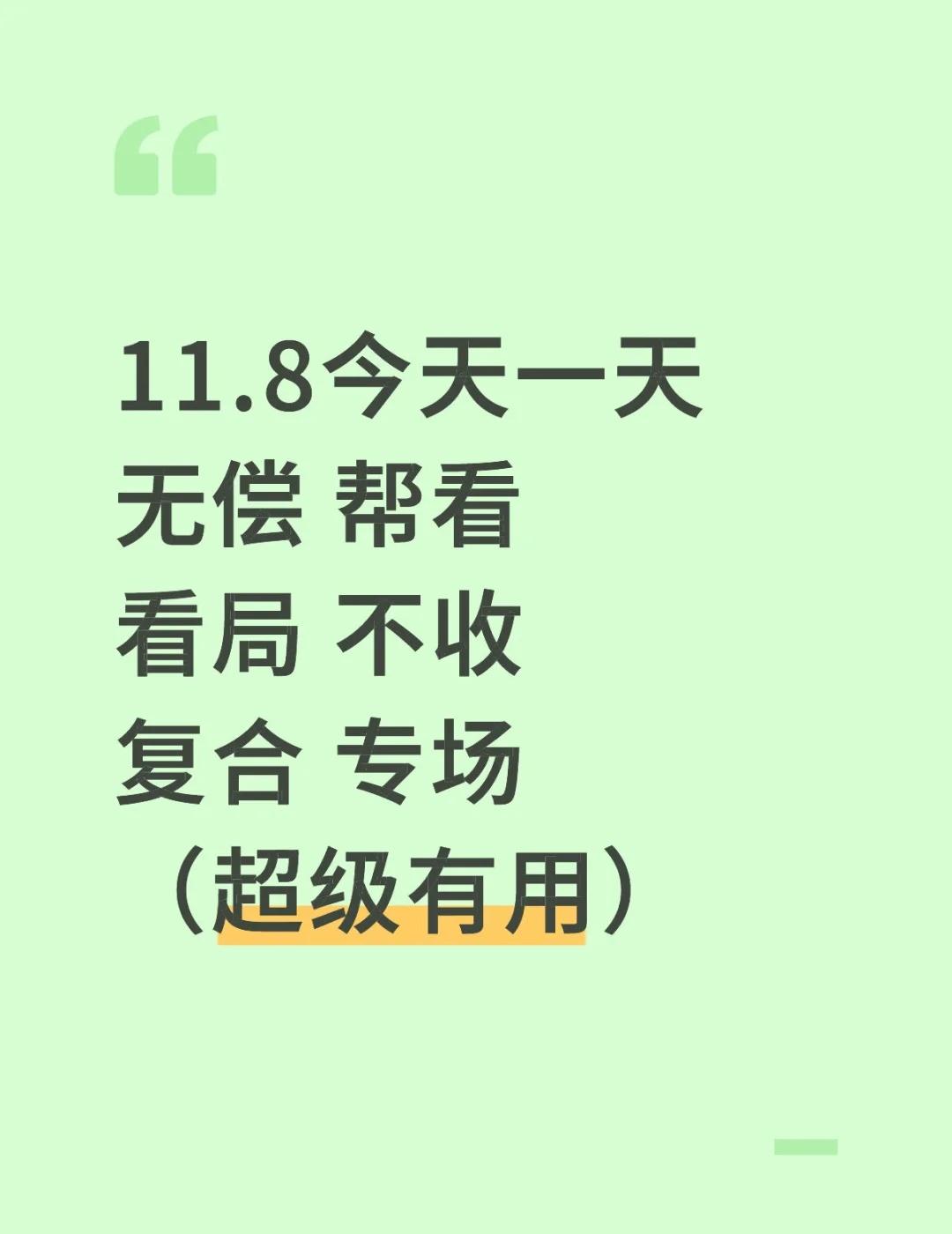 11.8今天一天 无偿帮看 看局不收 复合专场 (超级有用)