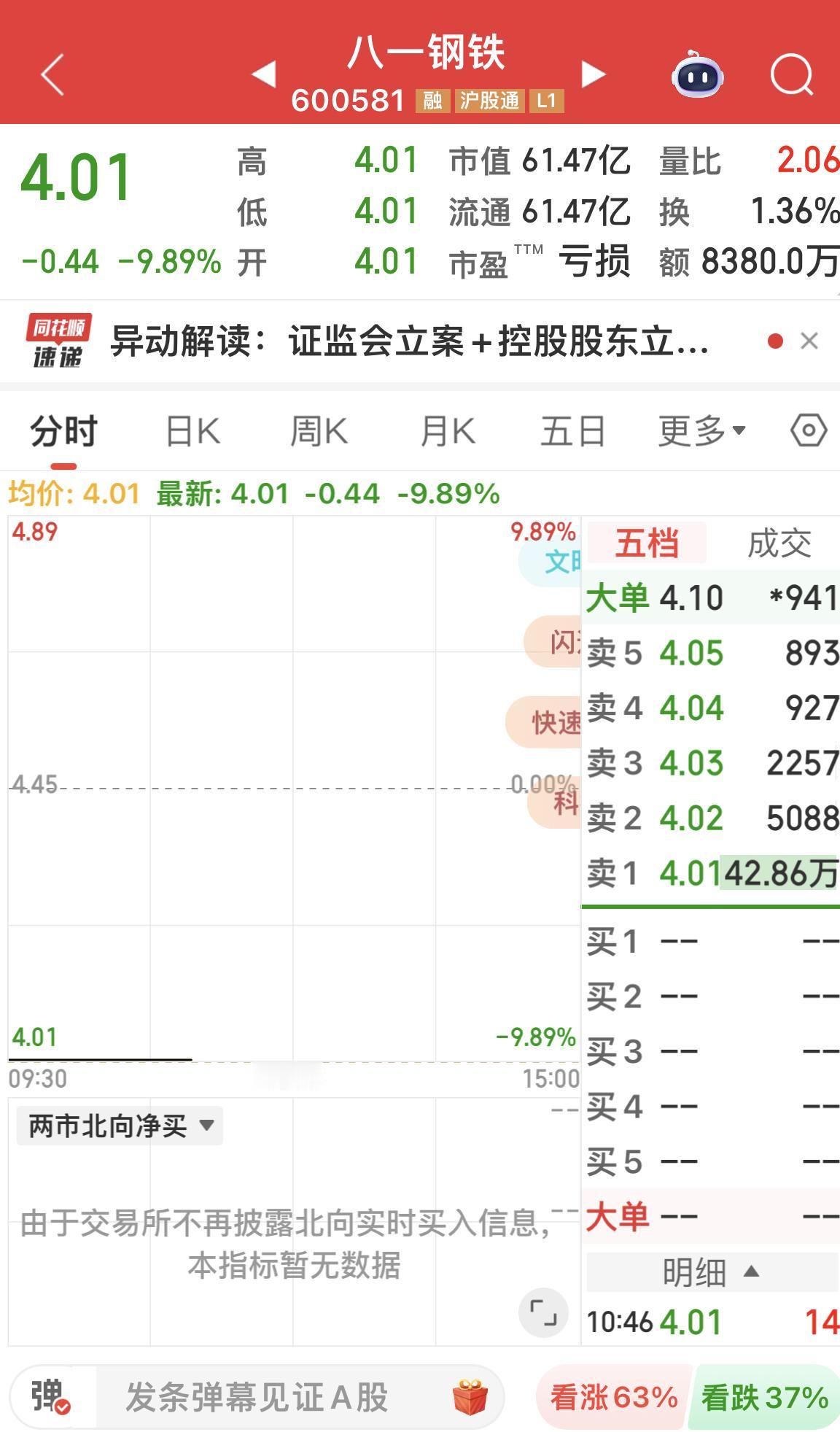 八一钢铁跌停。 立案 + 信息披露违规=关灯吃面。