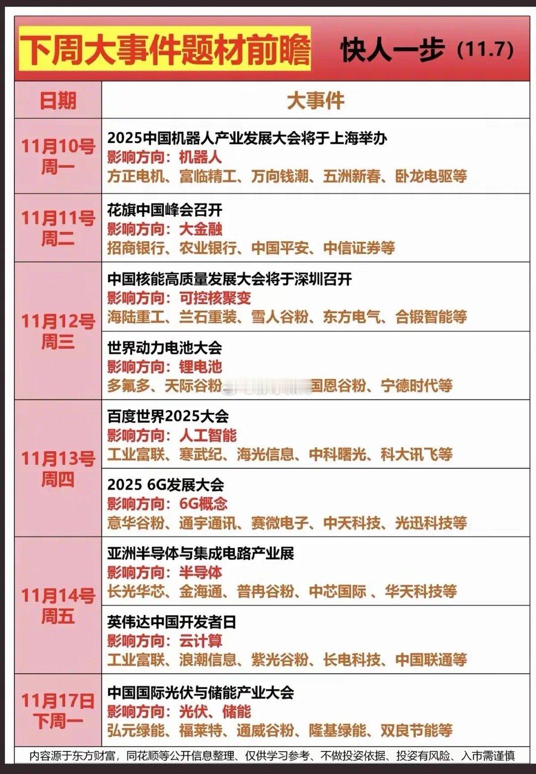 下周大事件题材前瞻!