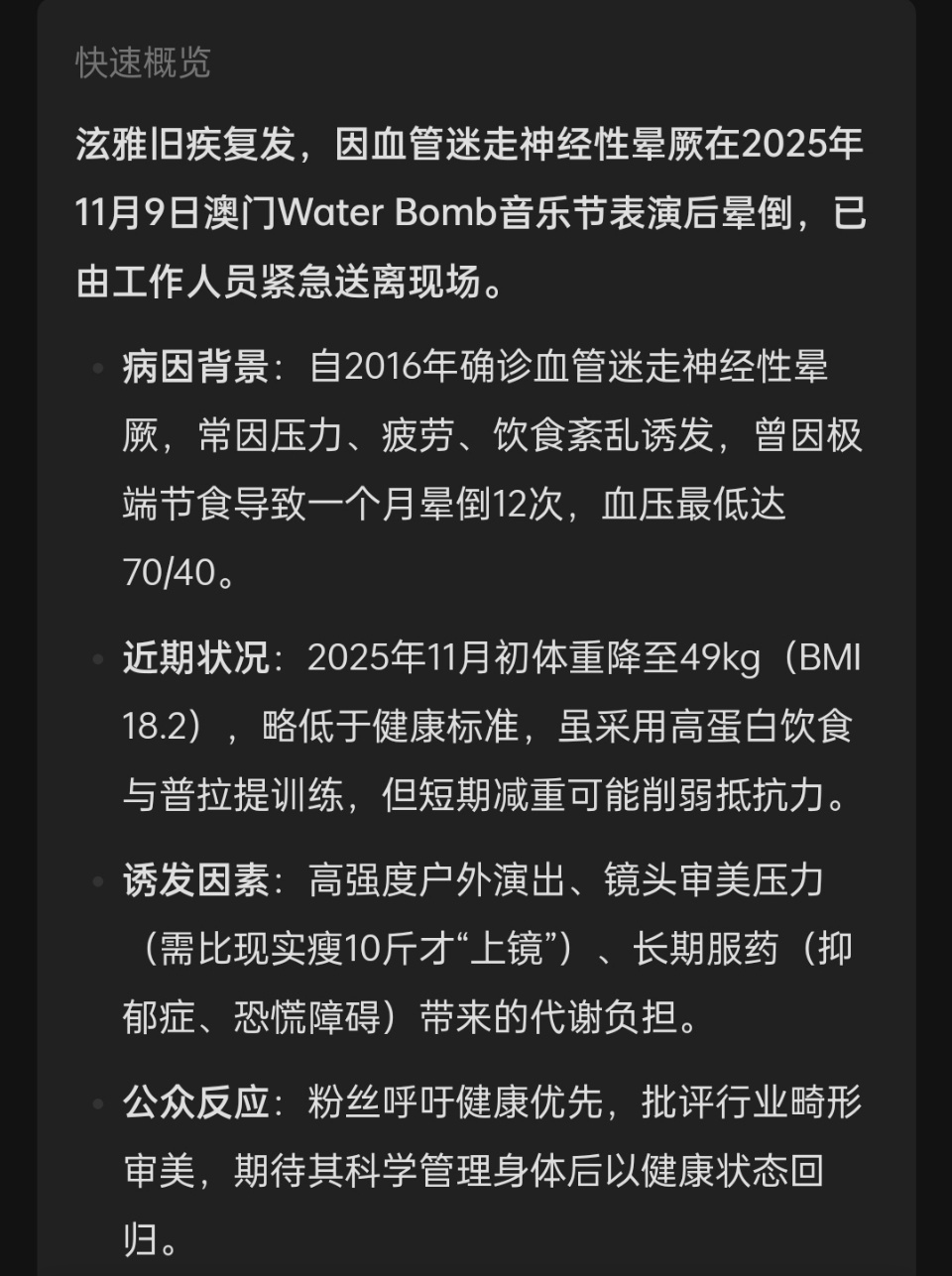 泫雅晕厥原因泫雅曾确诊迷走神经性晕厥