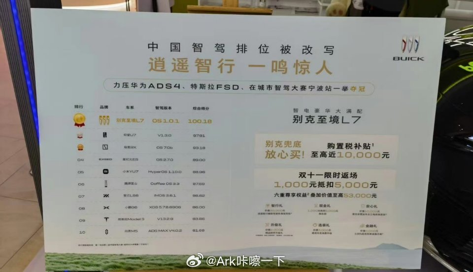 早鸭!现在一些厂商自己搞的智驾车机排行榜其实我觉得可以不必关注,这就跟当年安兔兔似的,华为系始终垫底,那我说实话垫底就垫底呗,照样卖的比你好就行,笑死,而且别克至境L7搞这榜单鸿蒙智行还拿的问界M5,第三第二都是五六十万的车,有点太乱了[doge]