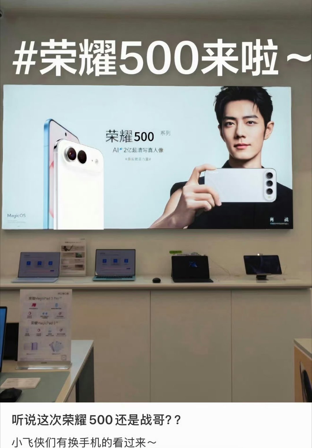 6.5中屏+8K电池+2亿主摄+潜望镜+金属中框+超声波指纹+骁龙8E,肖战代言!荣耀500系列很果又能打呀[喵喵]新品驾到