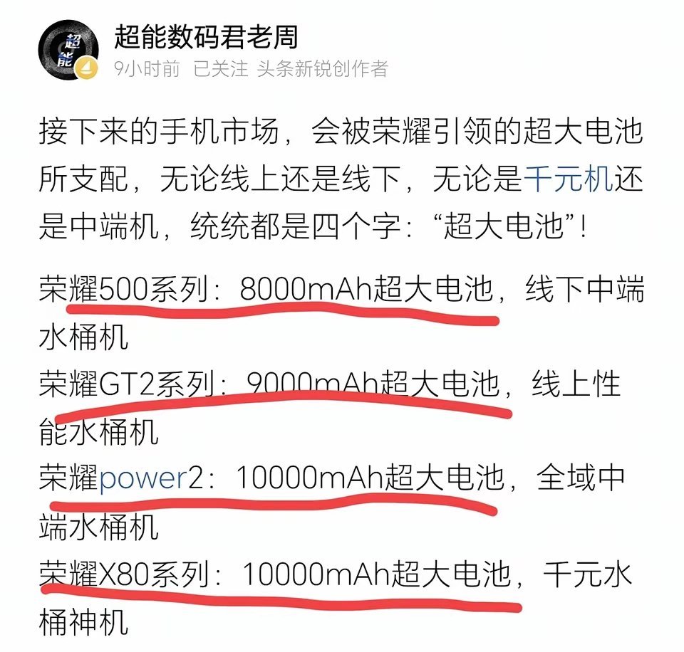 千元水桶机荣耀X80也干上1万毫安超大电池了。