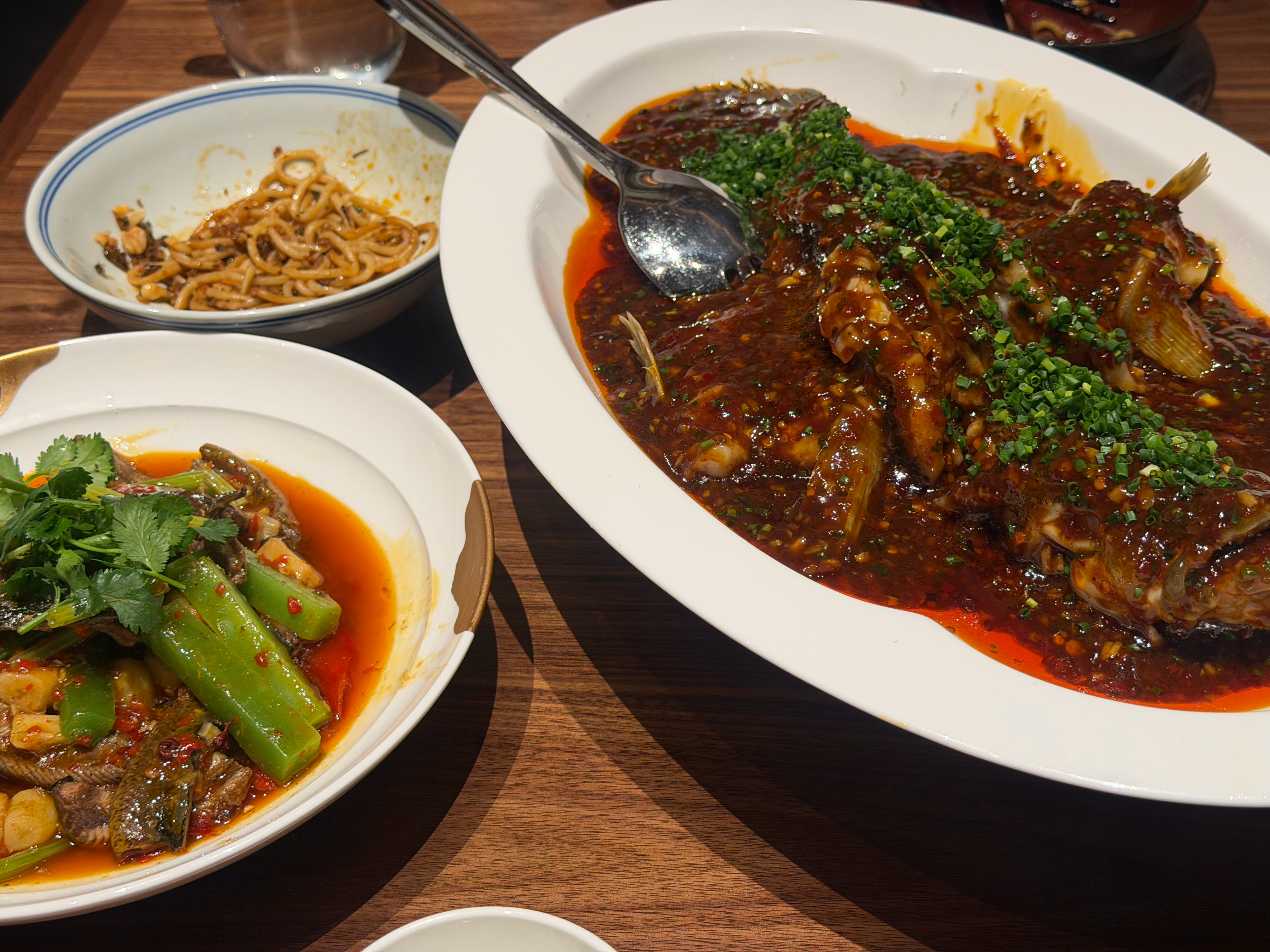 4️⃣又又又吃荣川菜了,这次的鱼吃起来有点像西湖醋鱼的感觉。很难相信这三张图都是两个人吃的[老师好]