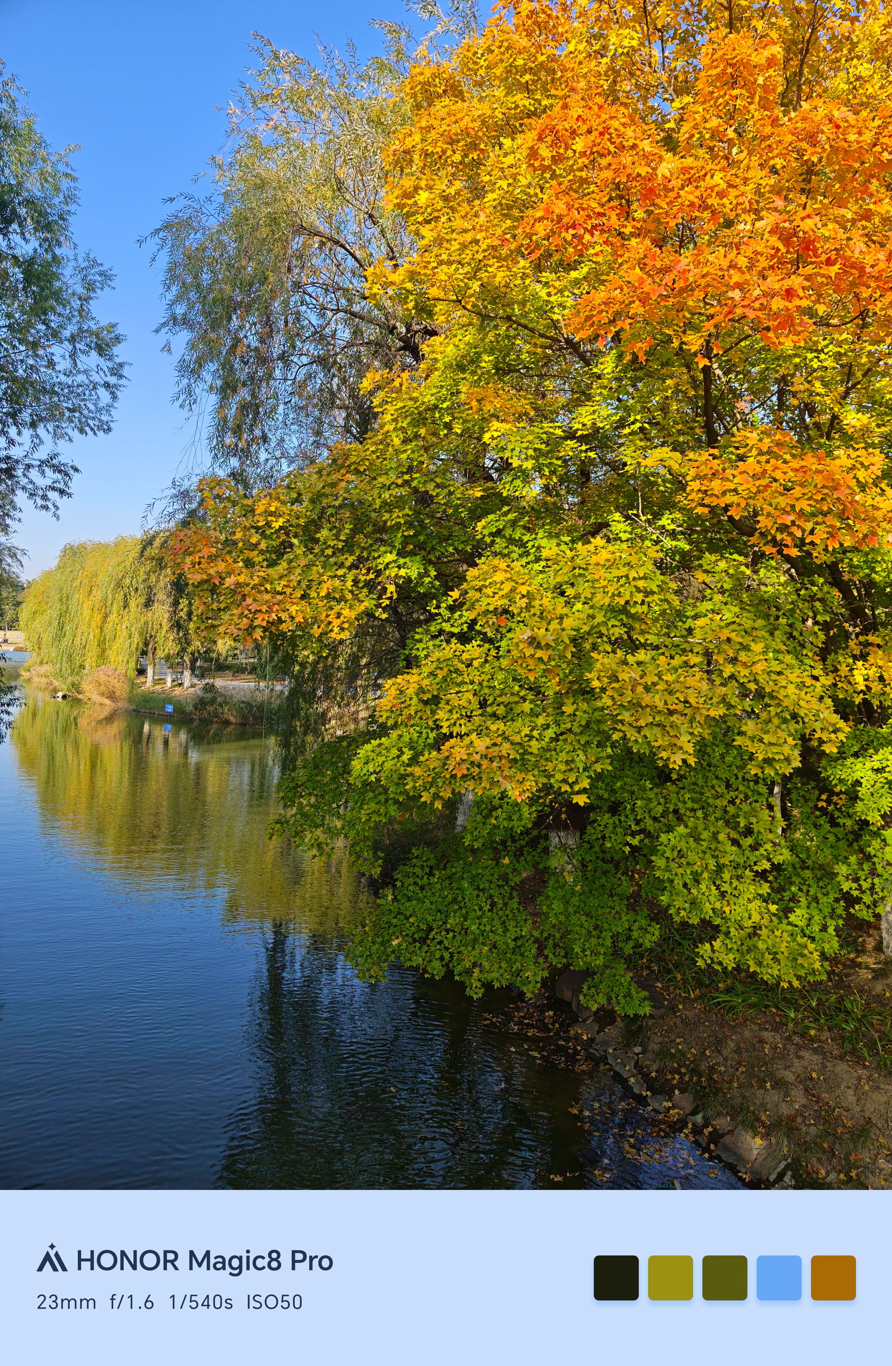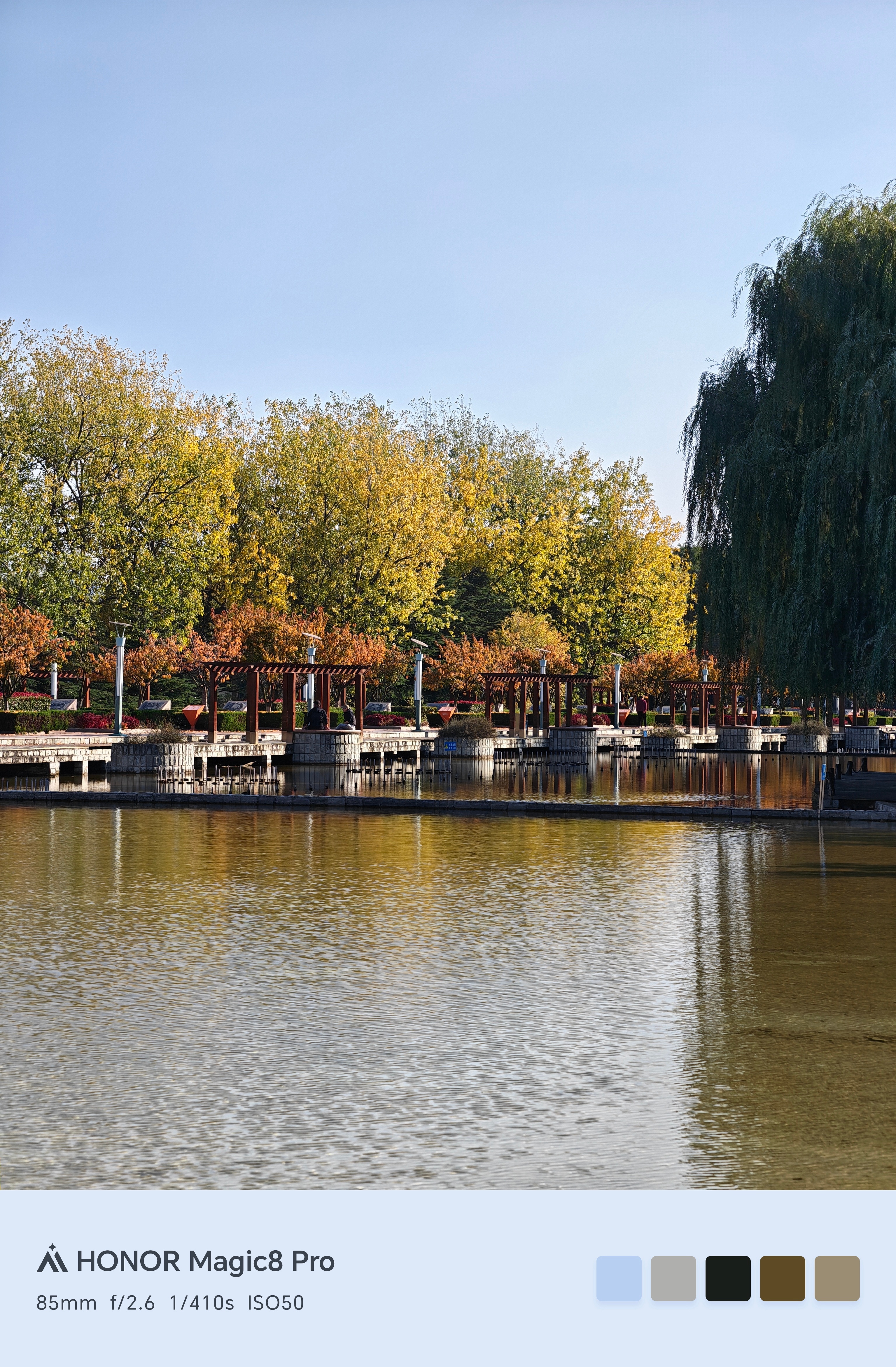 手持荣耀 Magic8 Pro,公园闲逛,秋天的氛围挺浓,但……已经过了立冬了。