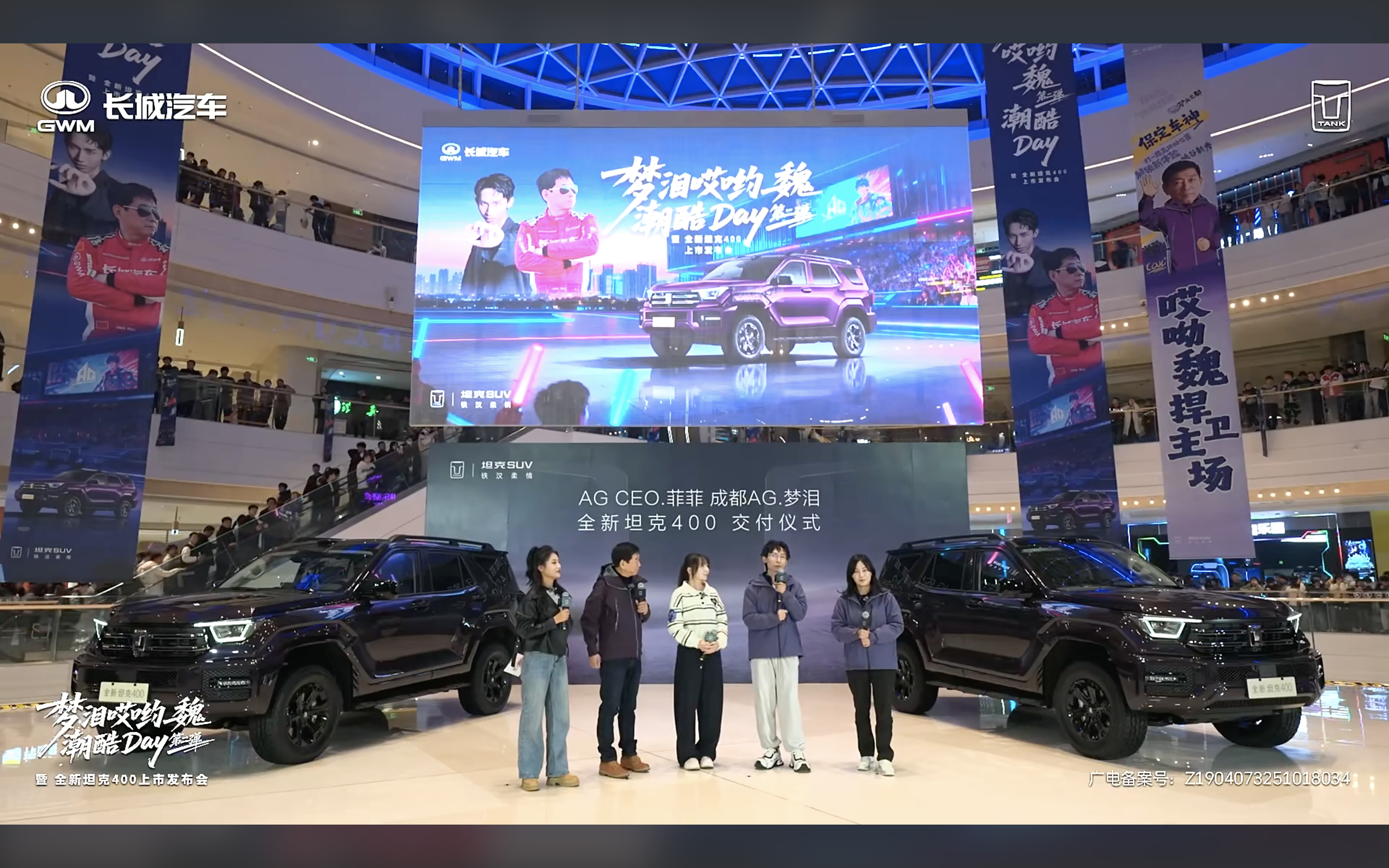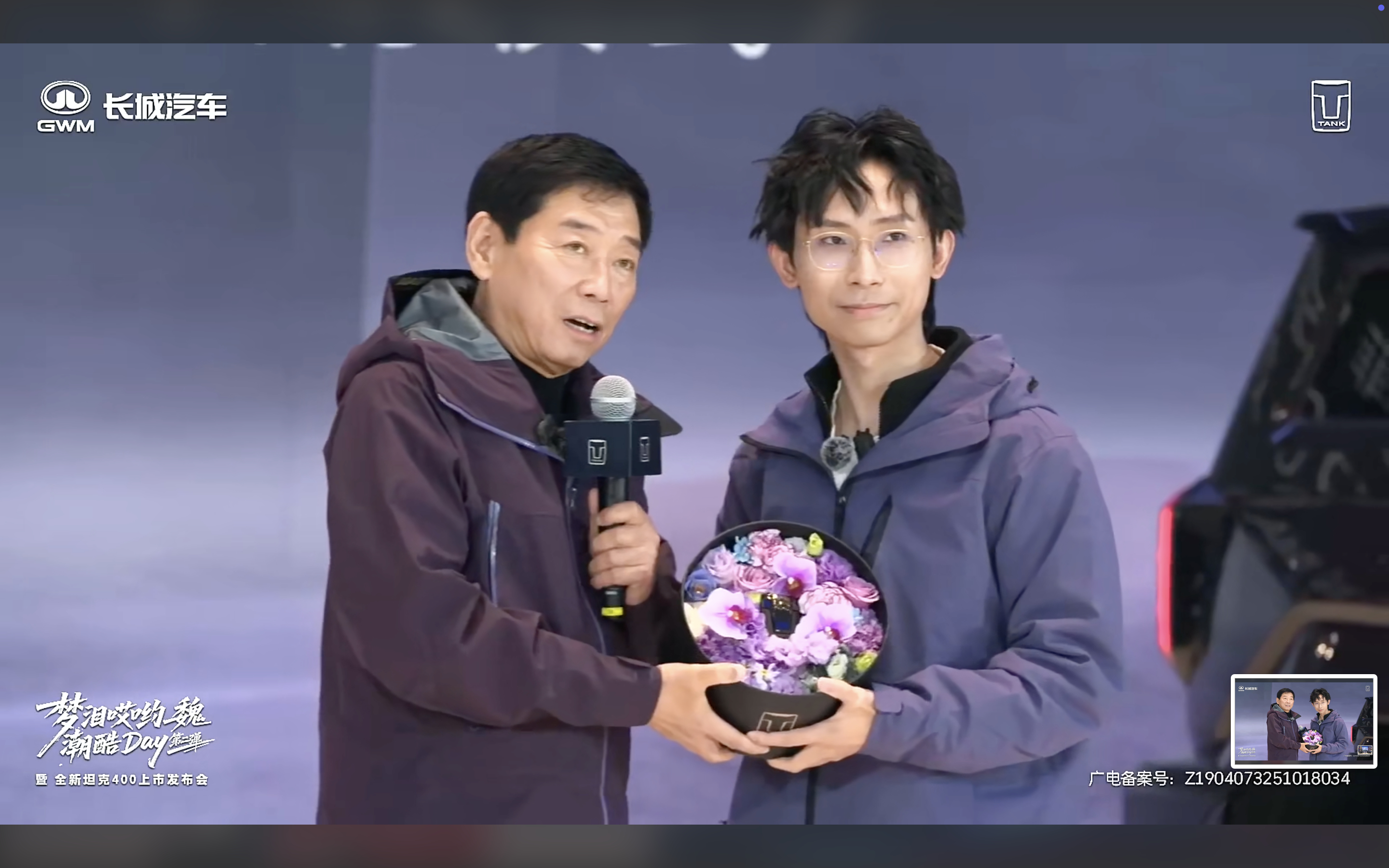 老魏 今天是接了个大地气,今天全新坦克400上市发布会,老魏一身紫,跟梦泪打成一片,我说实在的,以我个人私下接触老魏来看,老魏是绝对能跟年轻人打成一片的。聊技术,老魏真聊不了,他老泄密这玩意,三句五句就给他绕进去了[doge] 完了你就拿到了一手信息[doge] 所以年轻人玩越野,跟老魏聊,还挺通俗易懂的[doge]300和400这两台车,基本就是坦克面向年轻用户群体的排头兵,尤其是400,我还是那句话,优秀的原创设计,是具有审美滞后性的! 魏建军梦泪组队试驾坦克400