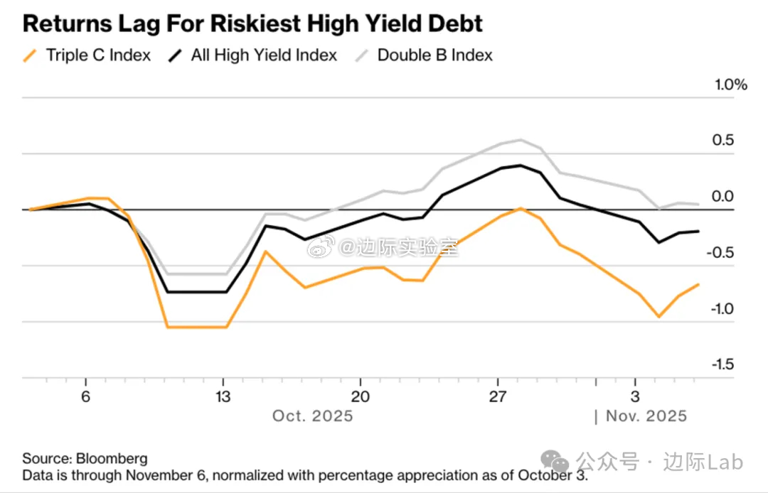 高收益债券市场内部的信用分层正在加剧,其中风险最高的CCC级债券收益率显著跑输大盘,标志着投资者的避险情绪正在回升。这一表现逆转了年内大部分时间里资金追逐高风险资产的趋势。