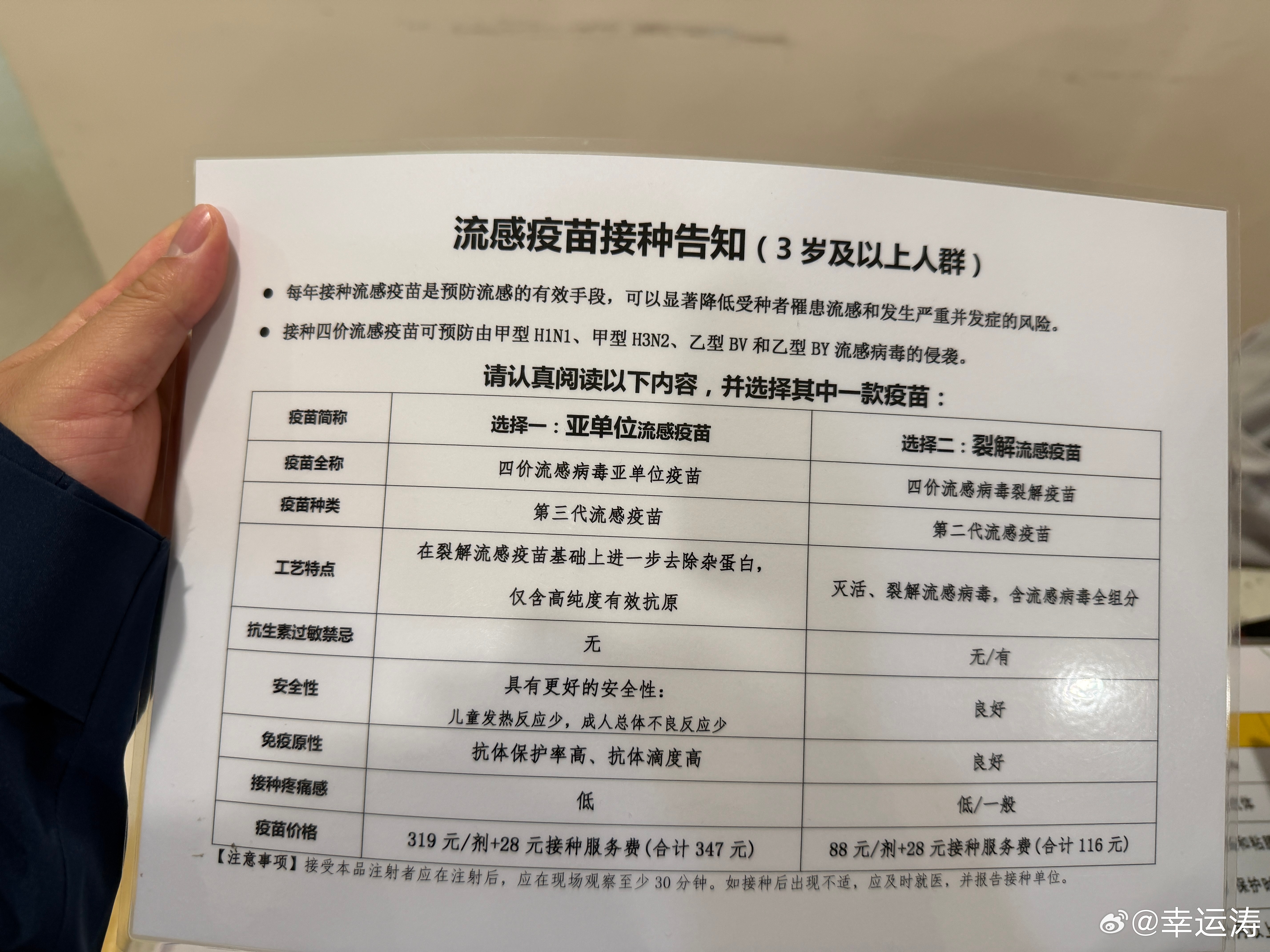 小朋友最近流感,我出差又频繁,来打一针疫苗预防预防。比较幸运,可以选亚流感疫苗,导医说医院就剩几支了,全市很多医院都断货了。果断选贵的打上!