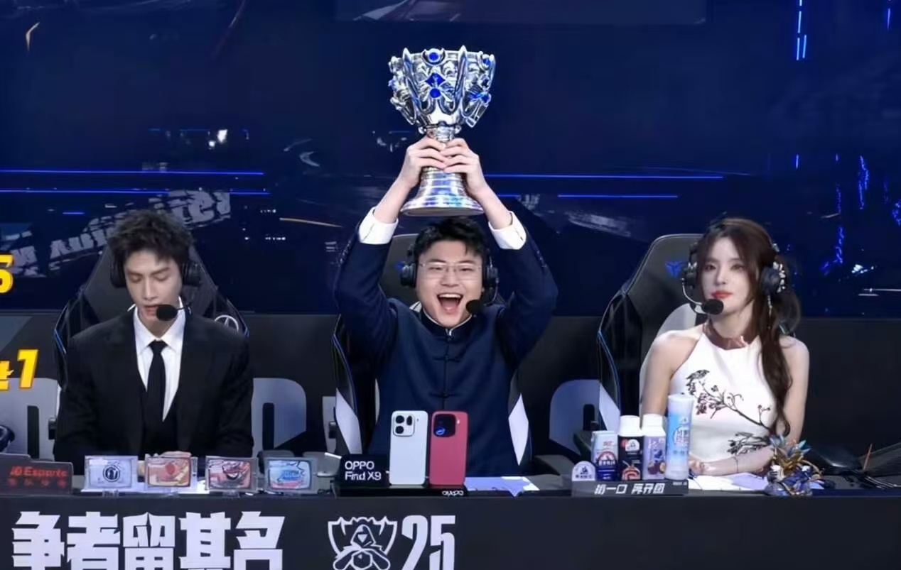 KT对战T1污渍前几天预言:包会有自己碰杯的那一幕。第四把结束,在解说席的UZ