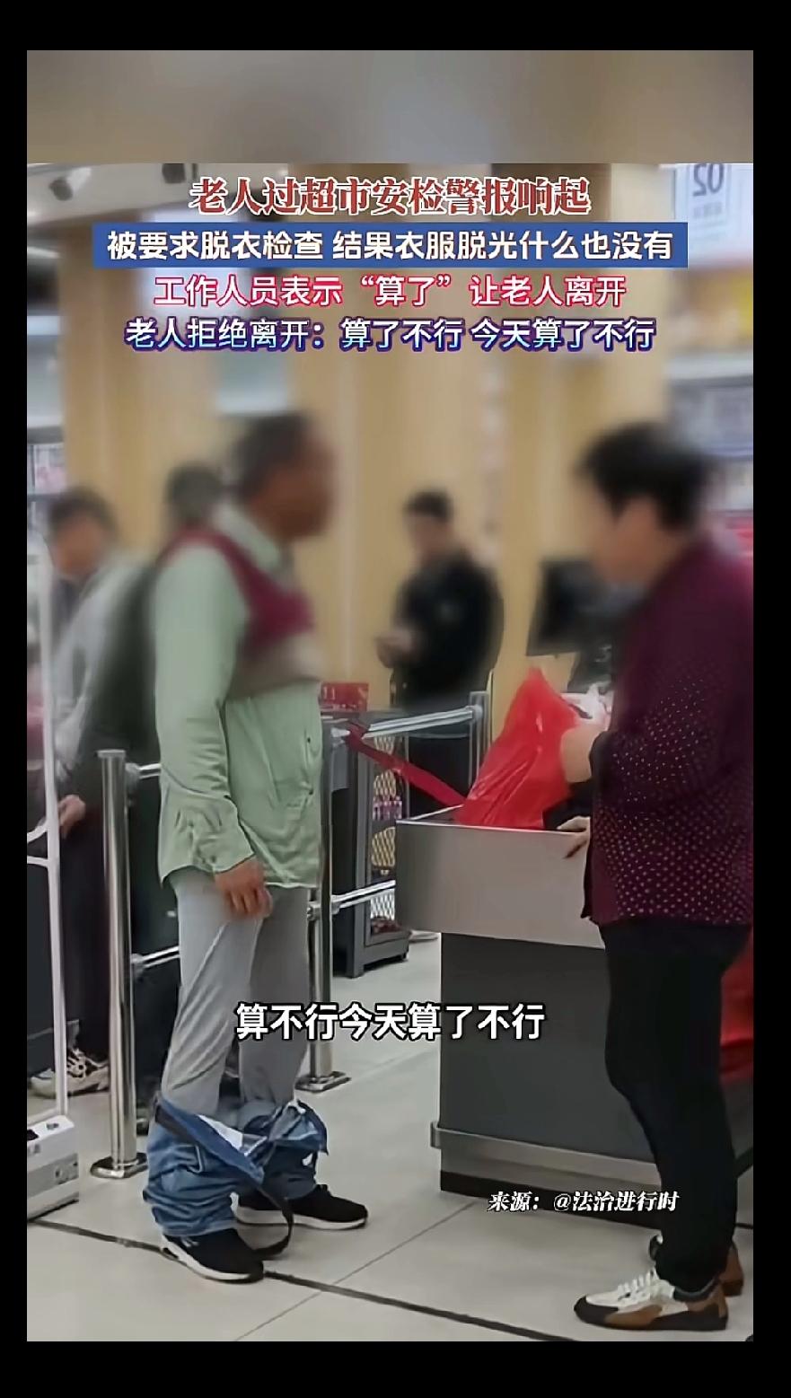当众脱衣检查结果什么也没有,老人要个说法不过分!老人过超市安检警报响起,被要求脱衣检查,结果衣服脱光什么也没有!工作人员一句算了让老人离开,是谁都咽不下这口气!工作人员不道歉,没有抱歉的意思,还催促离开。 老头不是胡搅蛮缠,他需要一个说法,一个正式的道歉,是被当众羞辱后的体面,是对尊重的底线。