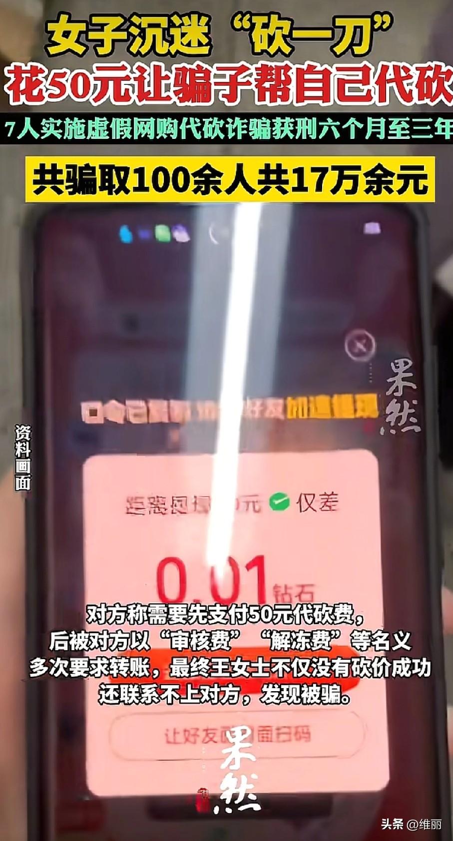 苏州王女士和百余人因为网购“砍一刀”遭代砍诈骗,总共被骗17万元。王女士多次砍价不成,轻信陌生人的代砍承诺,先付了50元代砍费,后续又被以“审核费”“解冻费”忽悠着转账,最后联系不上对方。 经查这是个7人团伙,分工明确,有人发虚假信息骗小额费用,有人装客服二次诈骗,最终都被判刑。 其实这类骗局早有预警,骗子就是抓住大家想贪小便宜的心理。提醒大家,正规“砍一刀”根本没有代砍服务,只要要求转账、要个人信息的,全是骗局。别被“保证成功”忽悠,遇到可疑情况赶紧报警,守住自己的钱袋子才最重要。