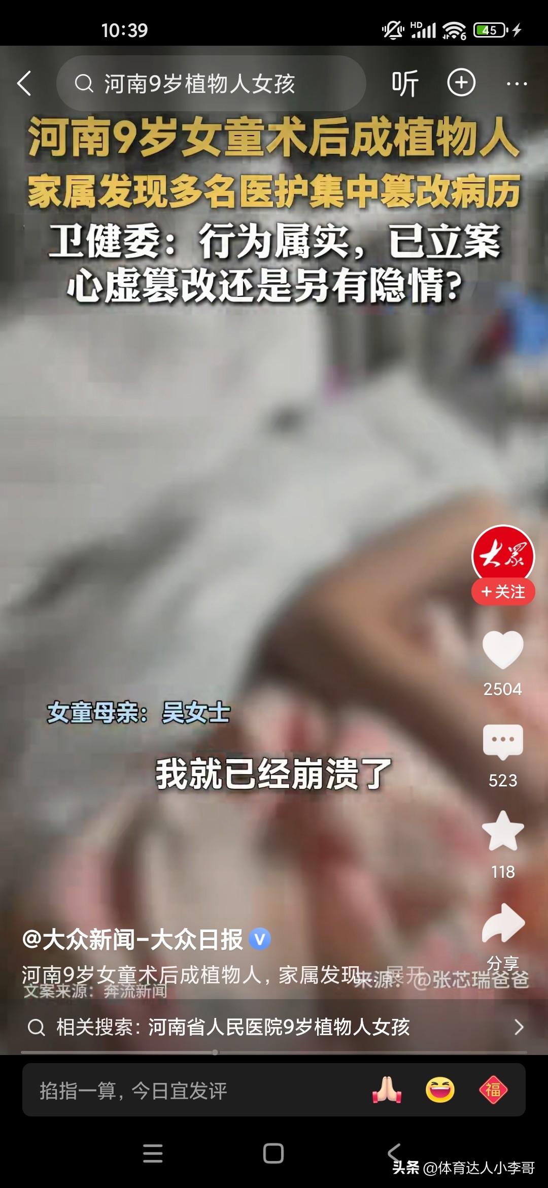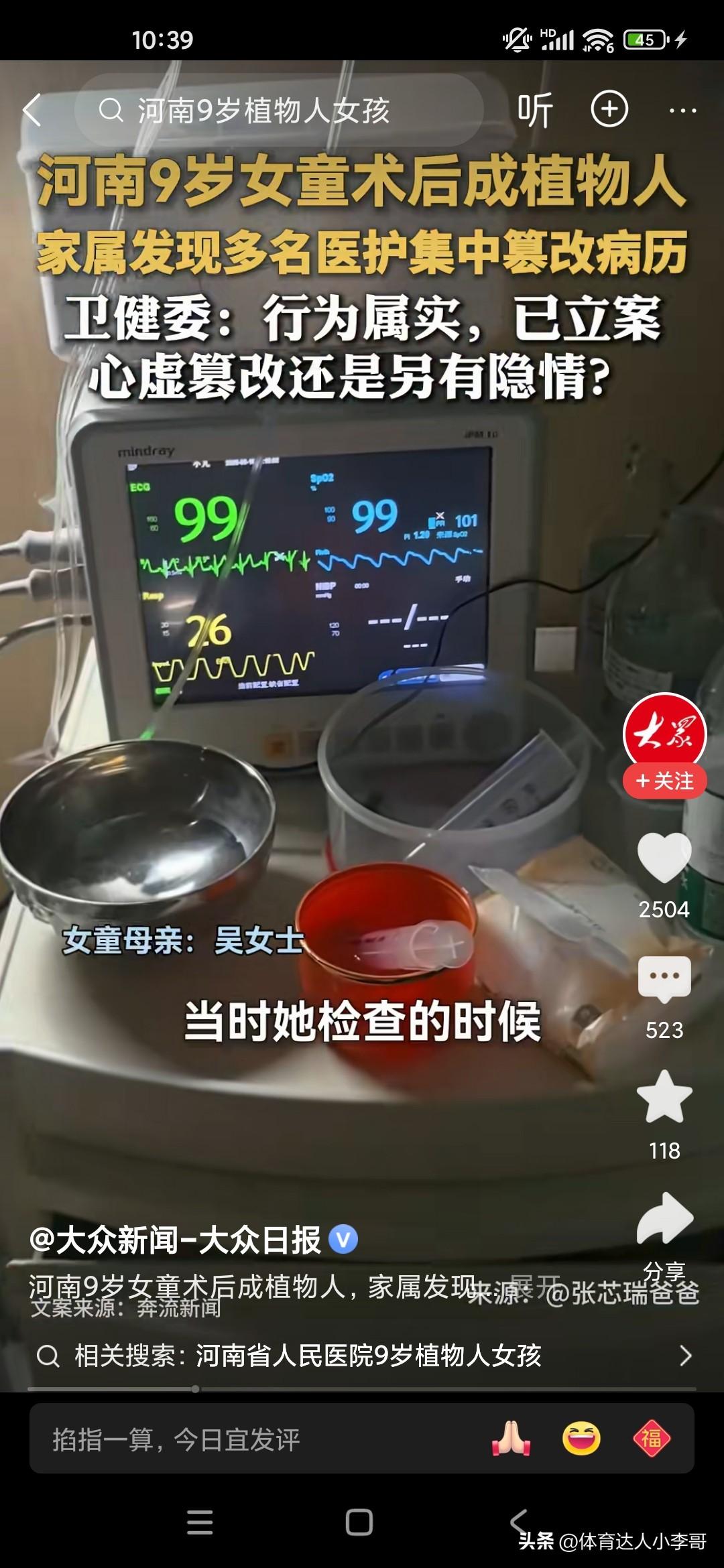 这个女孩太可怜了,只有9岁,去医院也只是治疗一下哮喘,但是没有想到会成为植物人,而且医院里呼吸科的很多医生就篡改病例,为了逃避法律的制裁,我估计可能给这个小孩可能输错某种液体医药了,所以说造成了严重的后果,然后某个医生在医院里又有关系,又有领导,然后的话就不可收拾现在已经报案了,已经报给了卫健委,就根本没有办法想象,因为这是一家省级的人民医院,竟然会出现这样的低级错误,太吓人了,可见这个母亲有多么的绝望和愤怒!