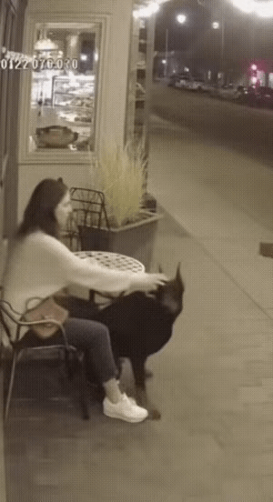 神操作,狗狗突然转头咬了女子一下,女子立马转身,保住了自己的双腿。