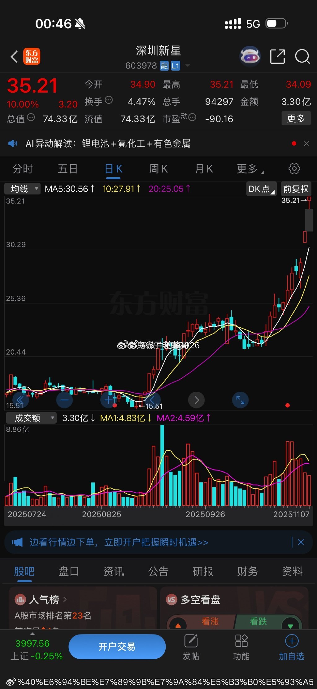 深圳新星603987 如果主力卖出货,确实还能吃肉!