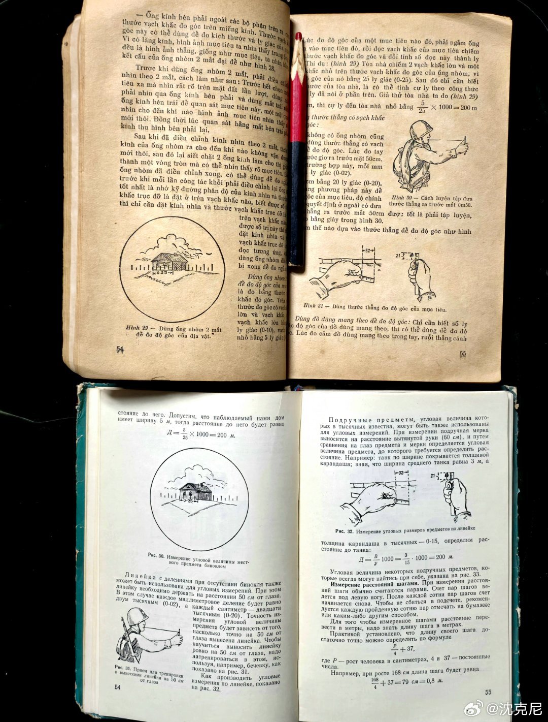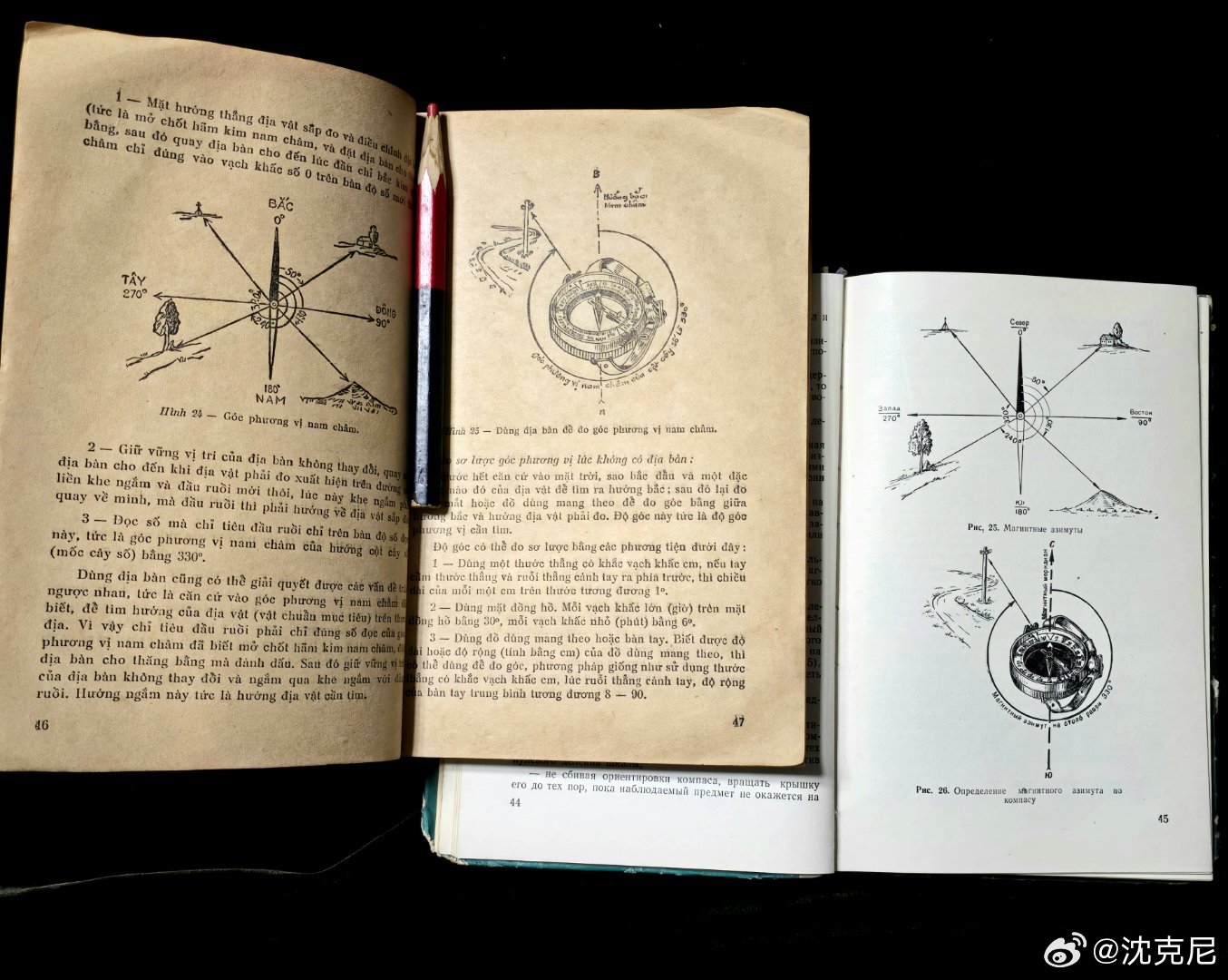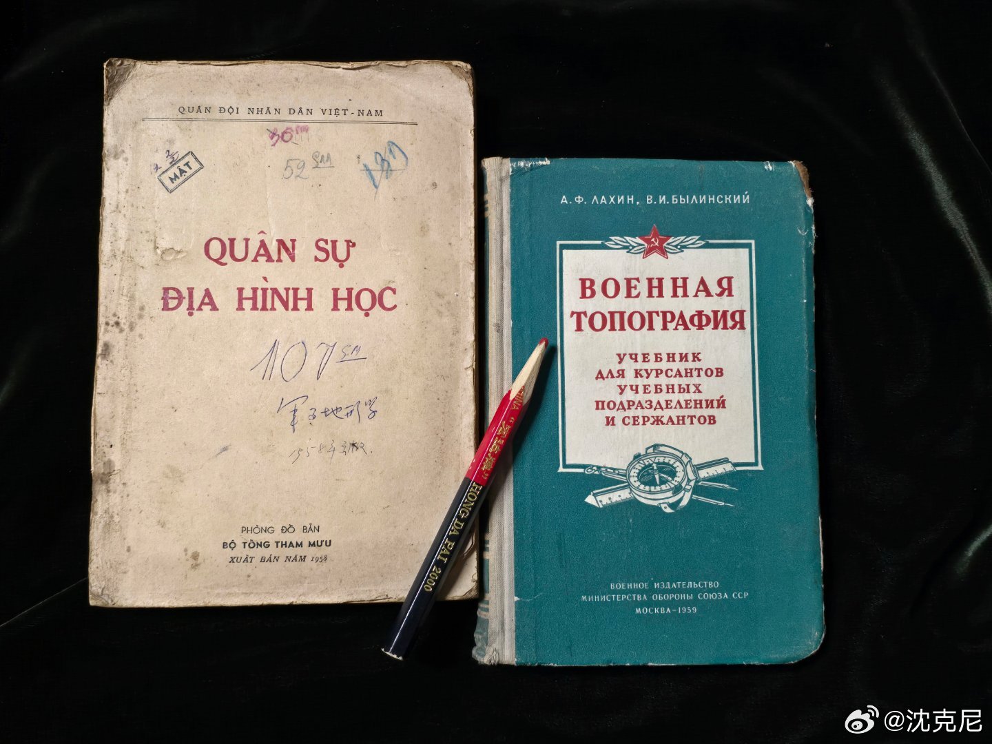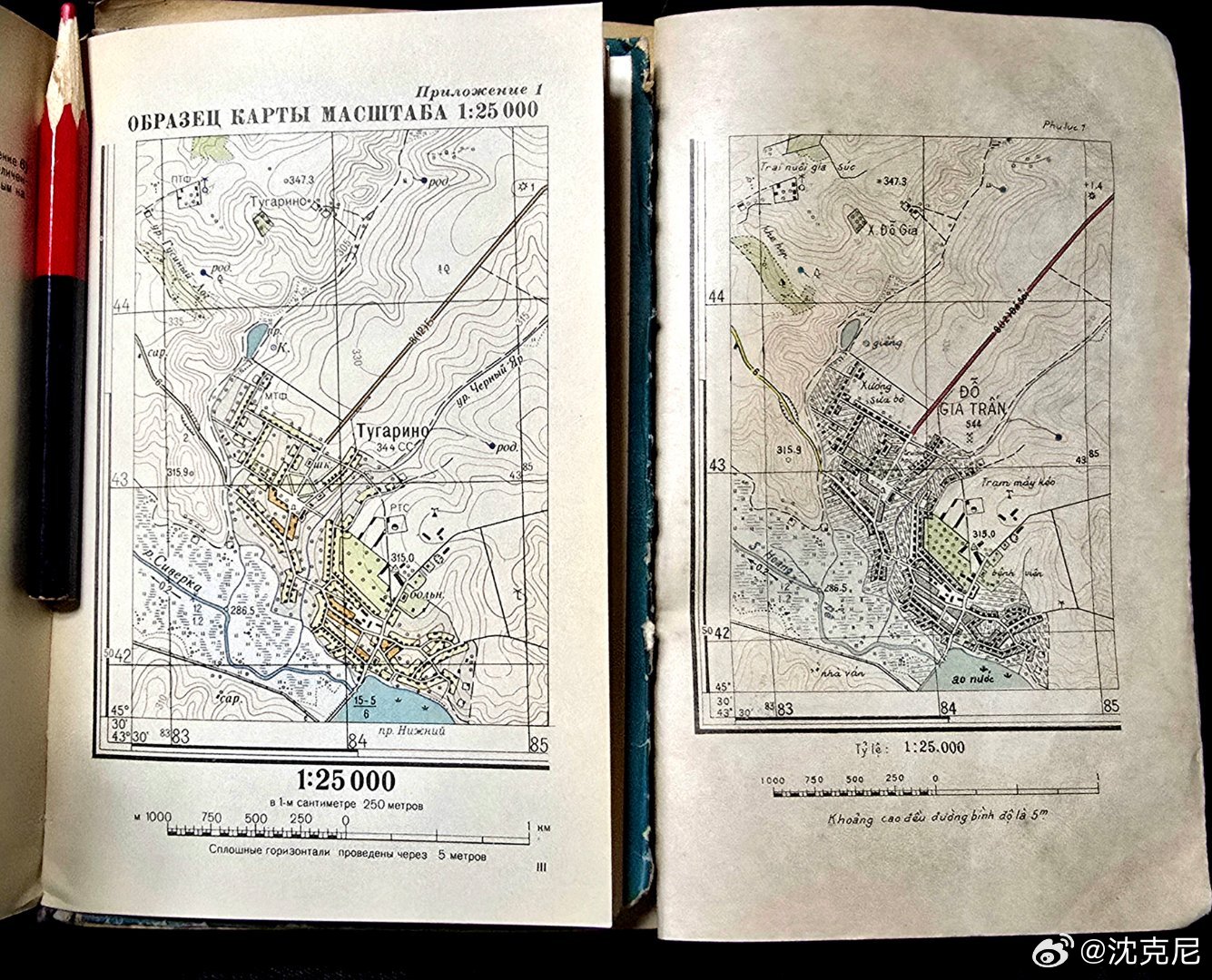 今日在旧书肆拾得1958年版越南的《军事地形学》,书中示例插图一望便知是翻译苏军的教材。如指北针的使用的章节,例图是苏联阿德里阿诺夫指北针和苏联仿德的炮兵指北针。书的最后1:25000比例的教学用图也眼熟,翻出苏联1959年版的《军事地形学》比对,果然一模一样。得到这本越南译自苏联的《军事地形学》我有些失望。我更想看到越南在往昔对法、对美作战和对外扩张战争,如入侵柬埔寨的军事行动中总结出具有自身特点的地形学经验。叹!