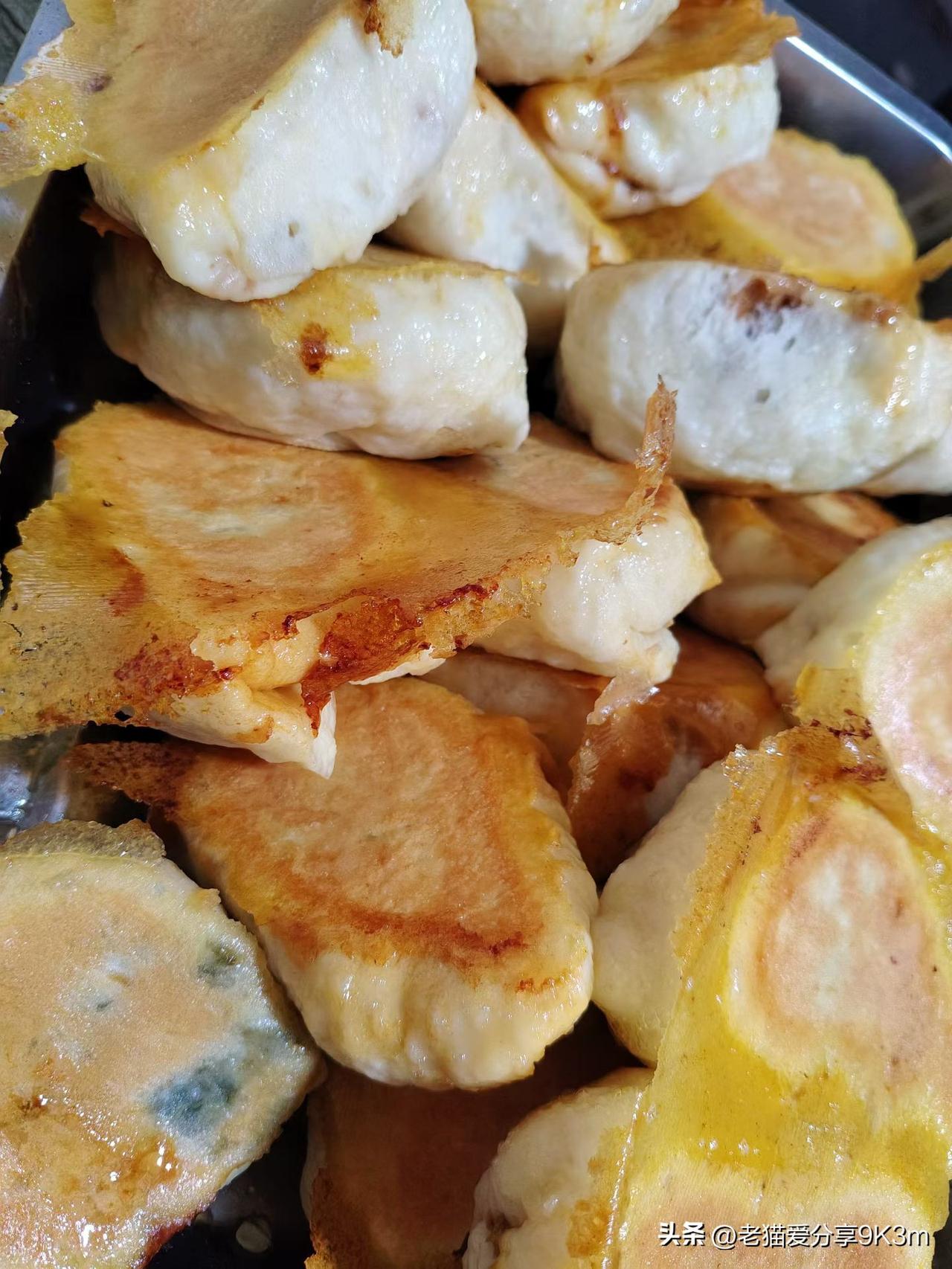 这刚出锅的煎包, 真的特别诱人, 今天中午就吃它了。