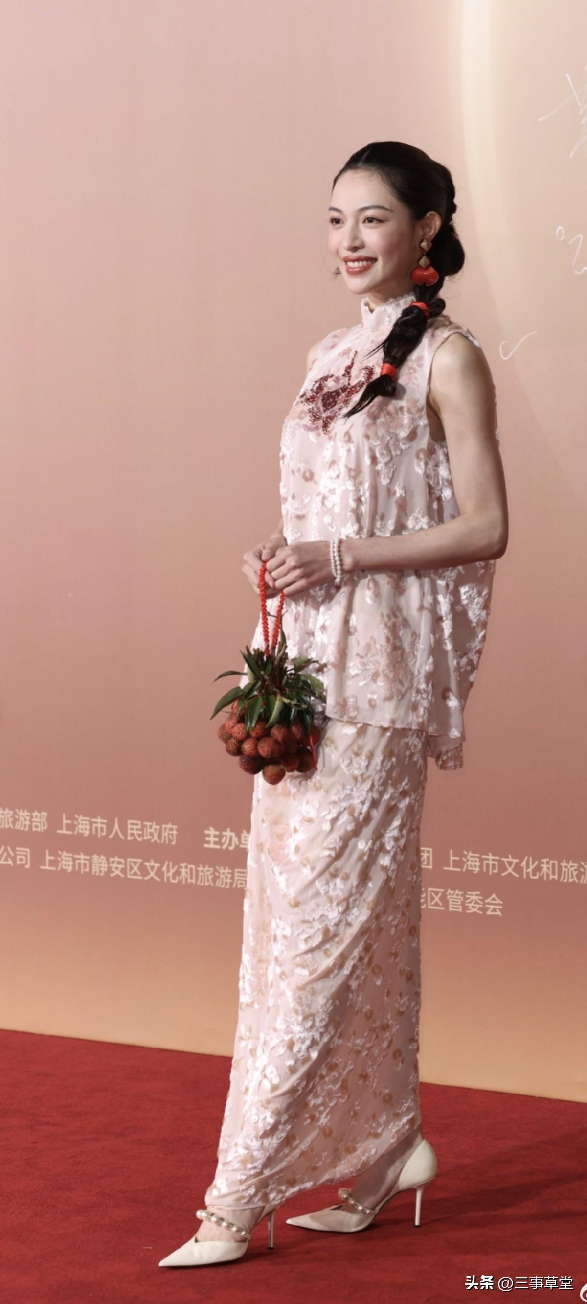 钟楚曦中国时尚产业盛典红毯生图,好明媚的荔枝姑娘,自信大方。新中式搭配细节满满,鞋子喜欢