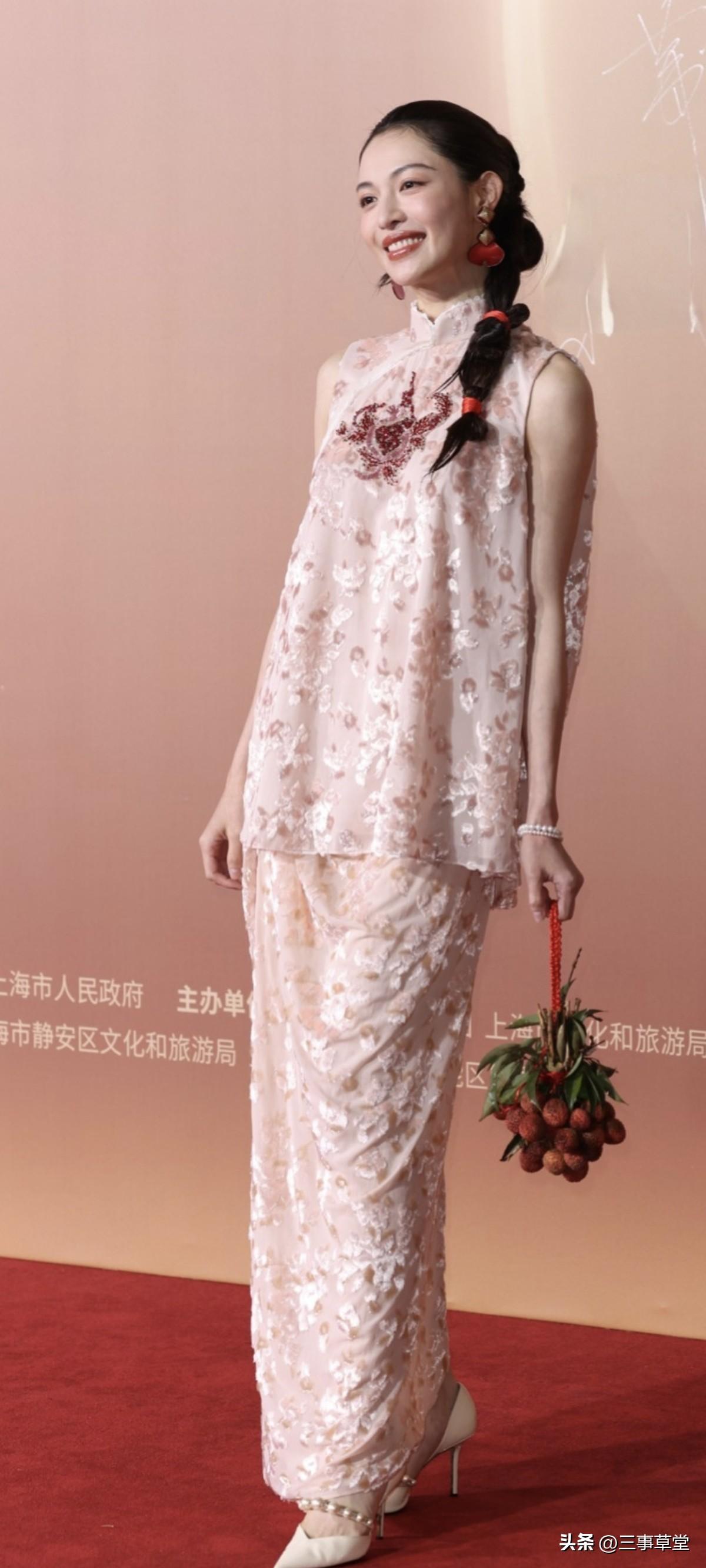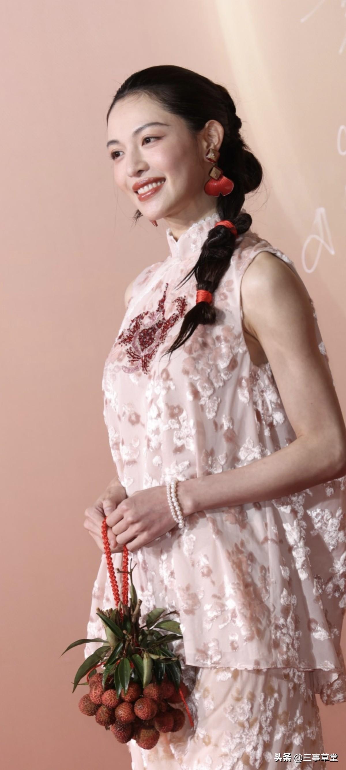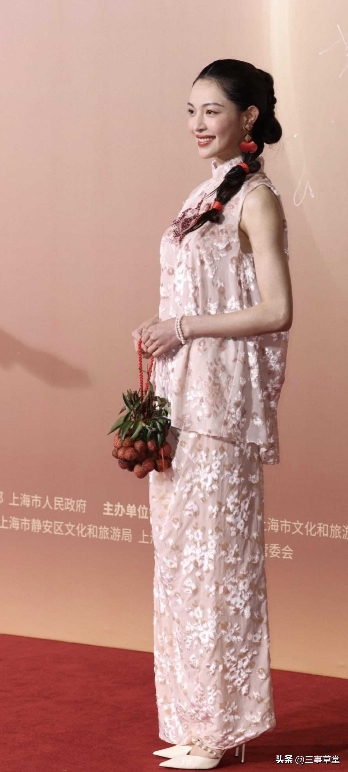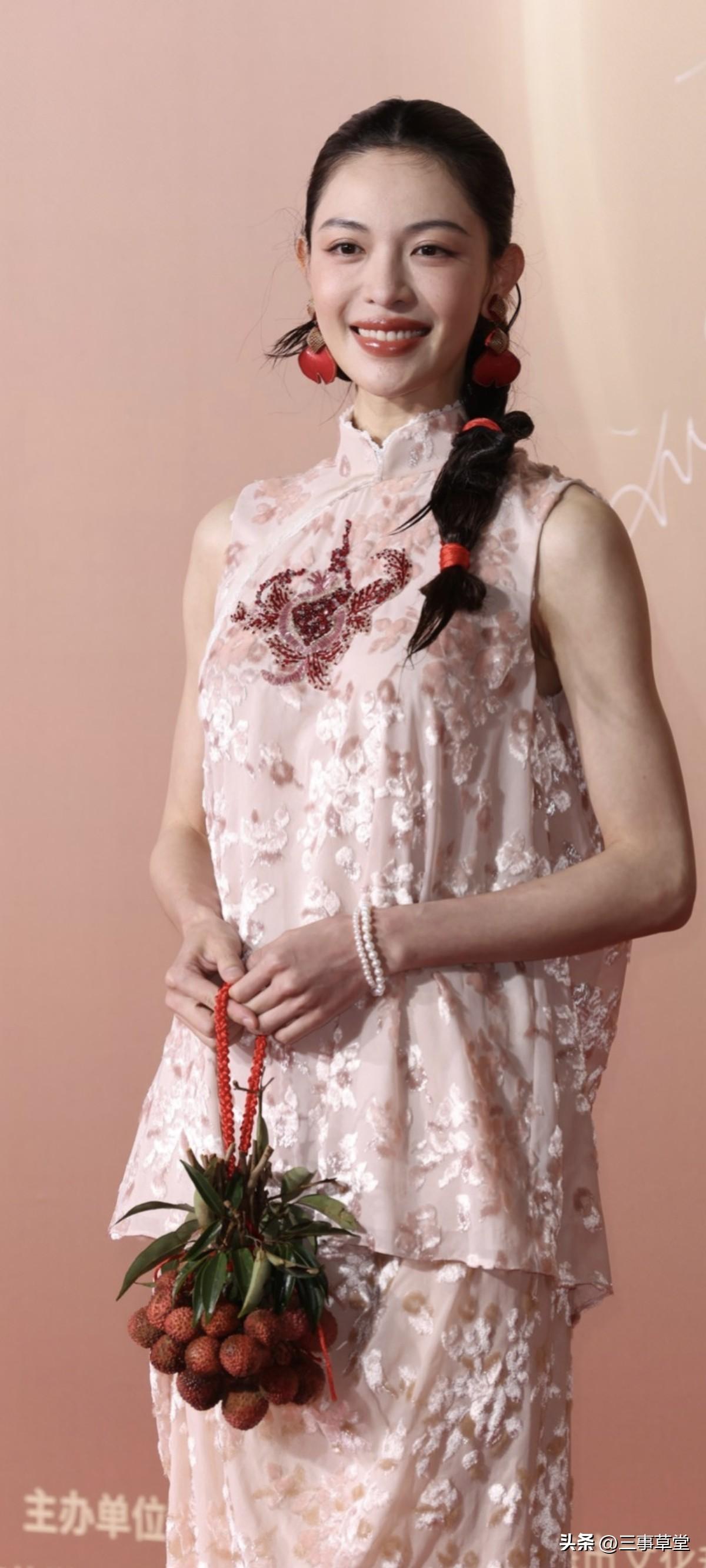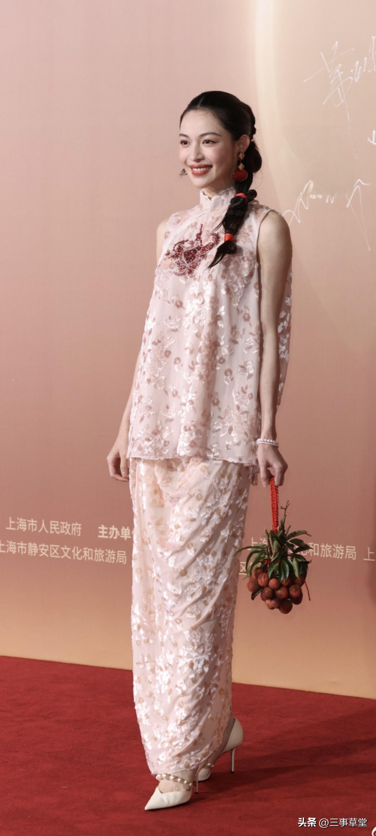 钟楚曦中国时尚产业盛典红毯生图,好明媚的荔枝姑娘,自信大方。新中式搭配细节满满,