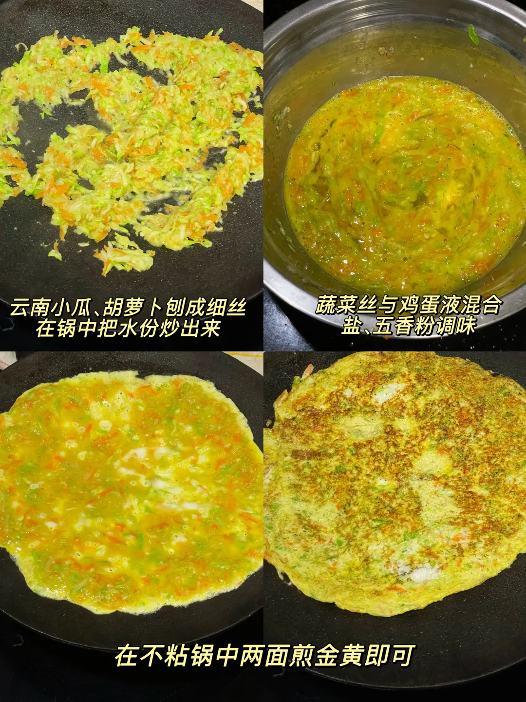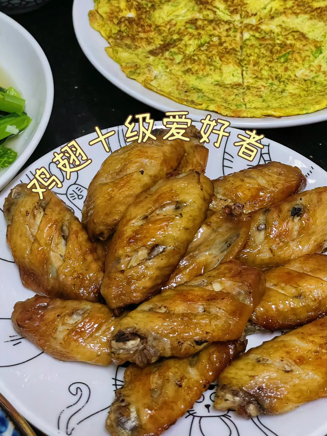 今天晚餐长这样 🌟黑胡椒烤鸡翅 鸡中翅|黑胡椒粉|蚝油|生抽|盐 1️⃣鸡翅用以上调料腌制30分钟或以上 2️⃣烤箱180度烤20分钟,中途翻面一次即可 🌟蔬菜蛋饼 云南小瓜|胡萝卜|鸡蛋|盐|五香粉 1️⃣云南小瓜、胡萝卜刨成细丝,在锅中把水份炒干 2️⃣混合到打散的鸡蛋液中,盐、五香粉调味 3️⃣不粘锅放少量的油,把蛋液摊薄,两面煎金黄即可 🌟蒜蓉炒迟菜心 🌟水煮红薯 🌟胡萝卜玉米排骨汤