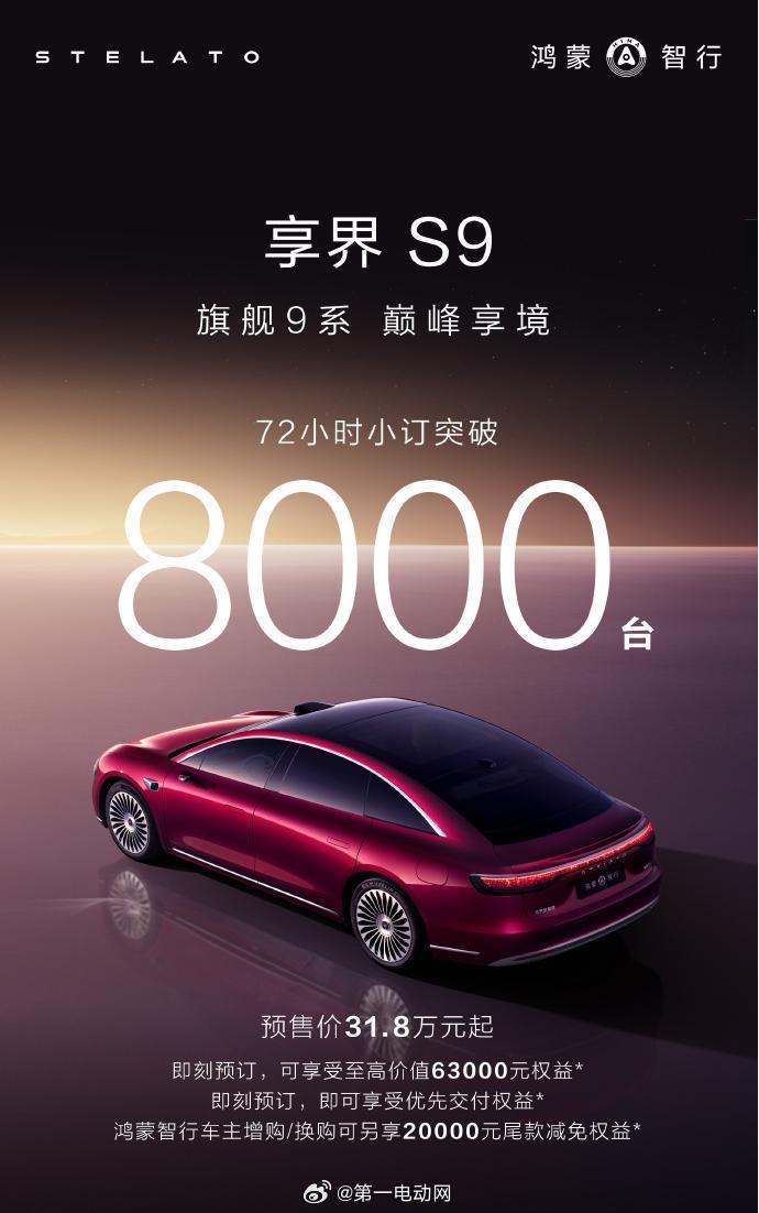 新款享界S9 72小时小订破8000,这个成绩算是不错吗?新能源汽车