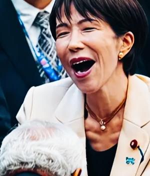 这是不是高市早苗标志性表情之一! 这表情非常有特点,估计都很难模仿出来吧! 高市