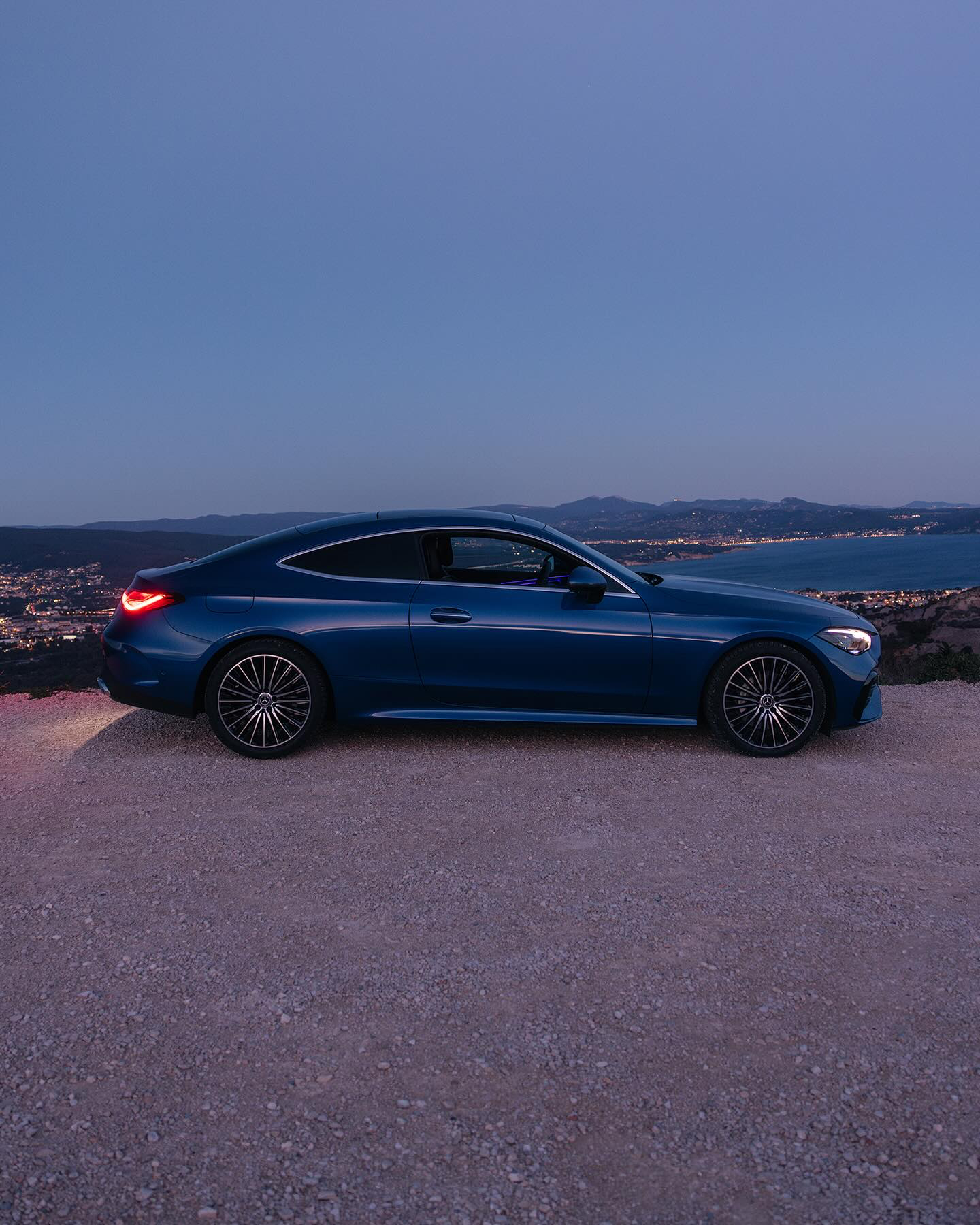 海夜蓝色车身,恰似天色荡漾的浪漫奔驰CLE怦然心动