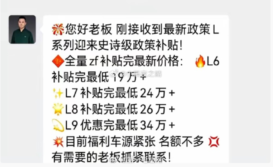 有博主分享理想汽车 最新活动价格,L6最低19万+,这个价格大家觉得有没有吸引力