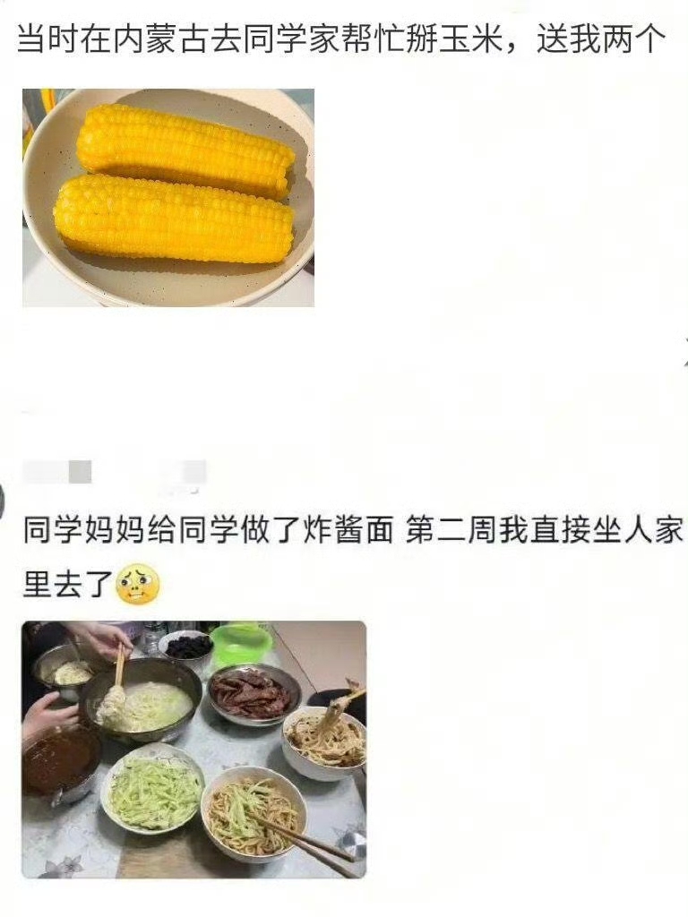 同学妈妈给同学做了炸酱面,第二周我直接坐人家里去了