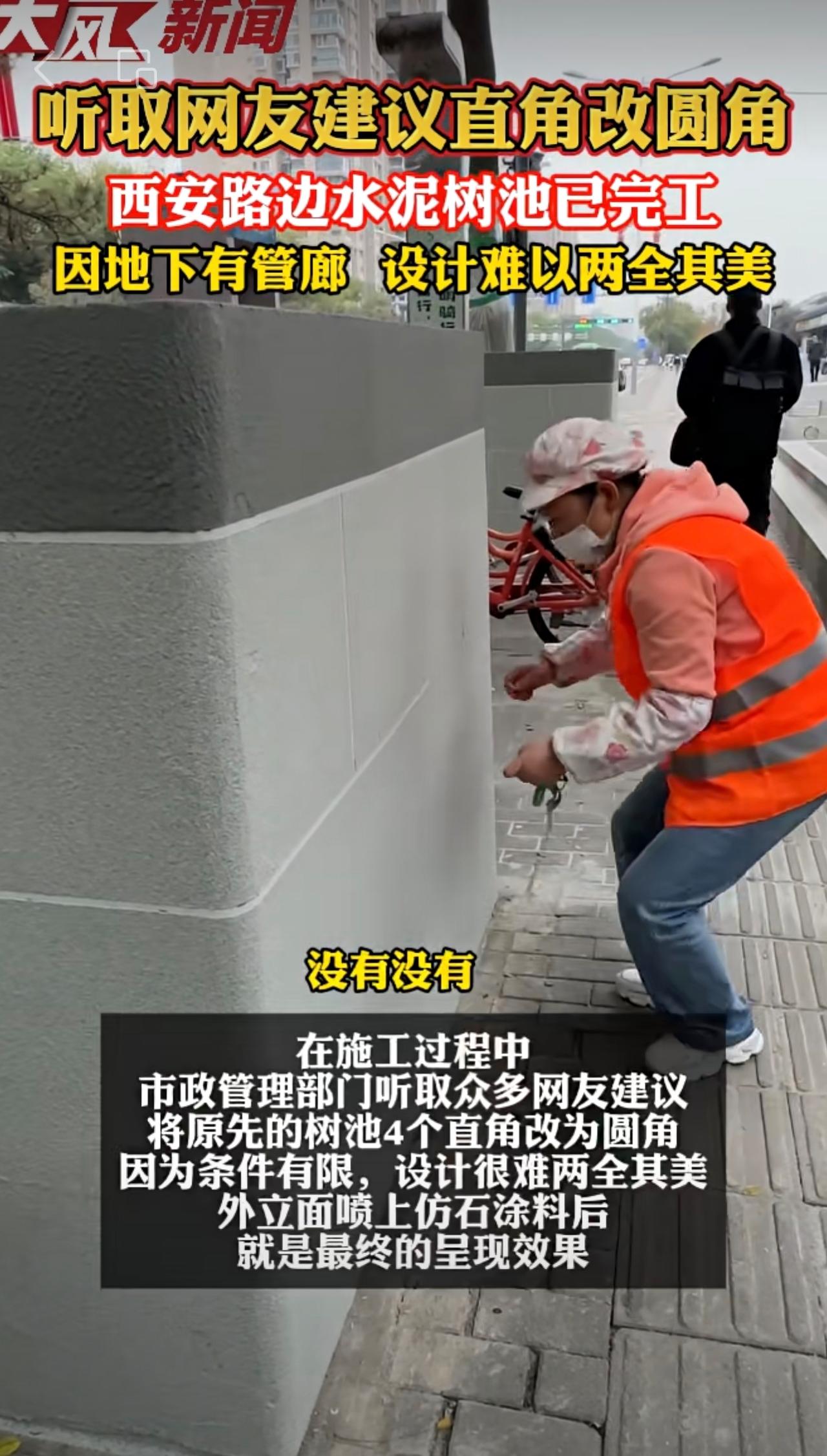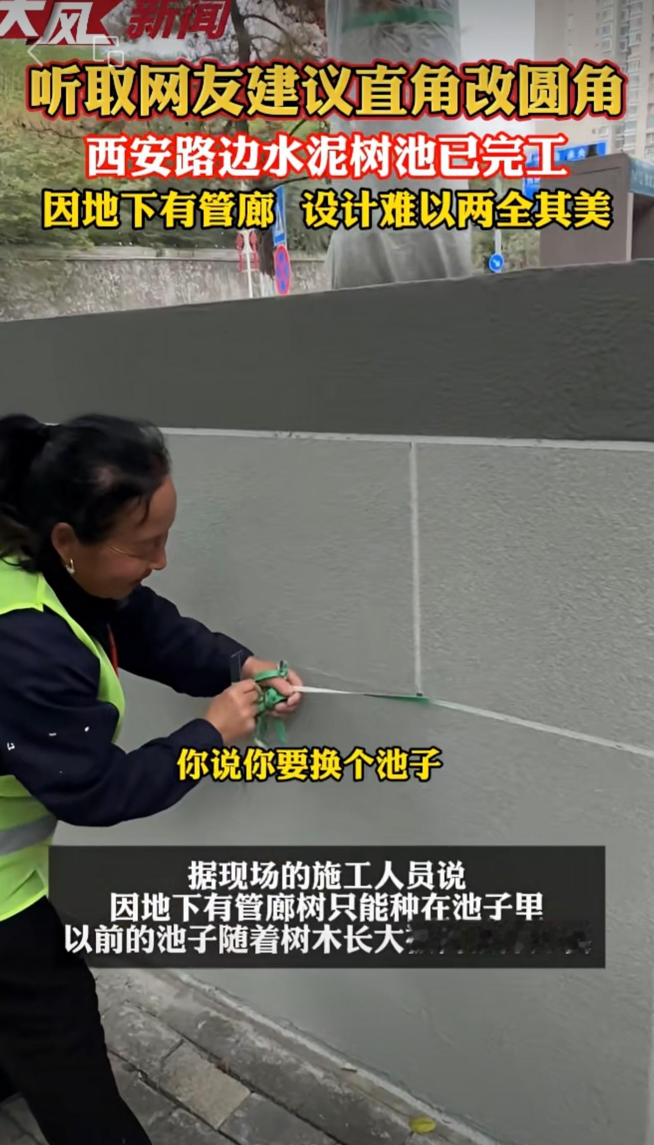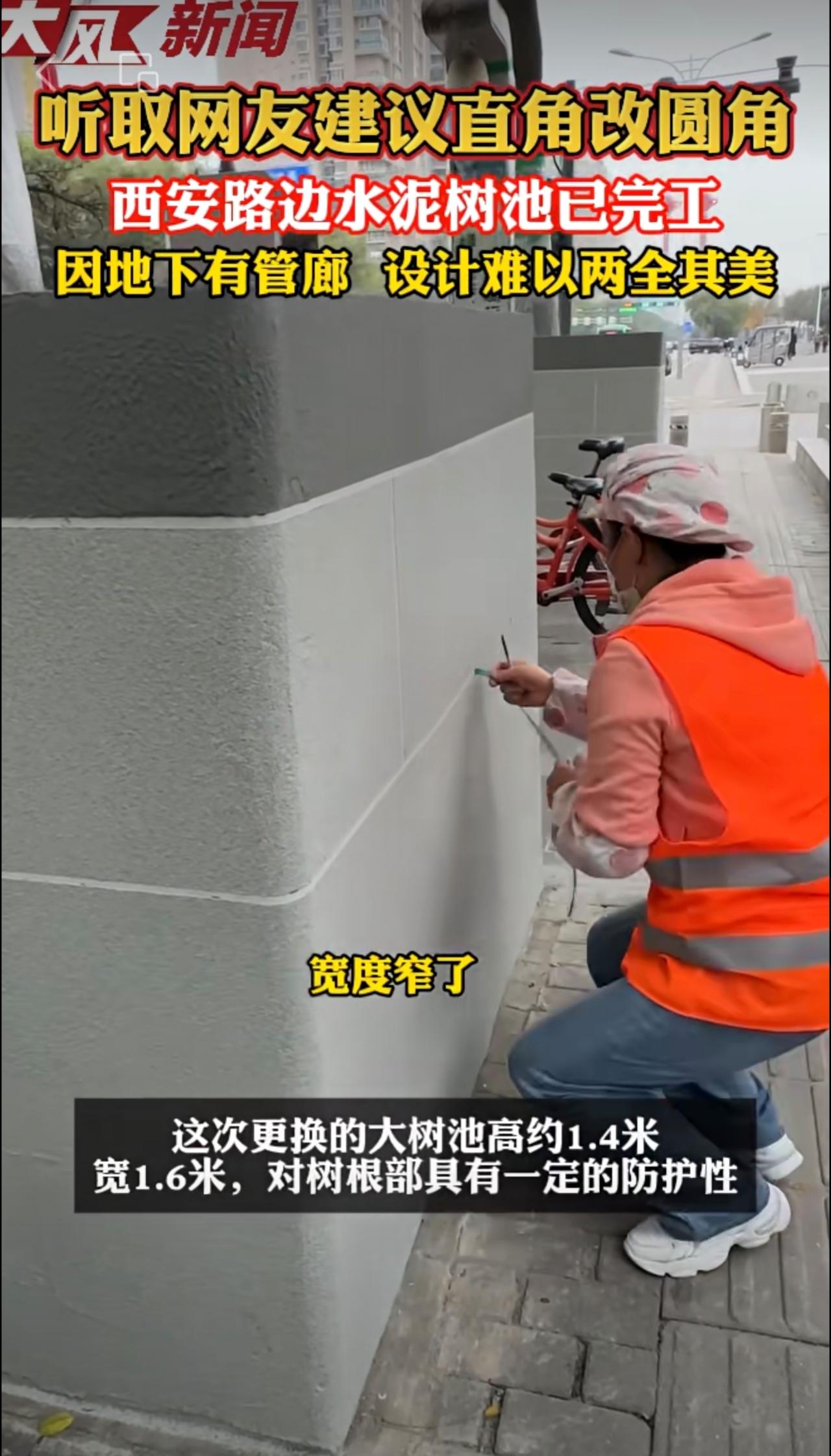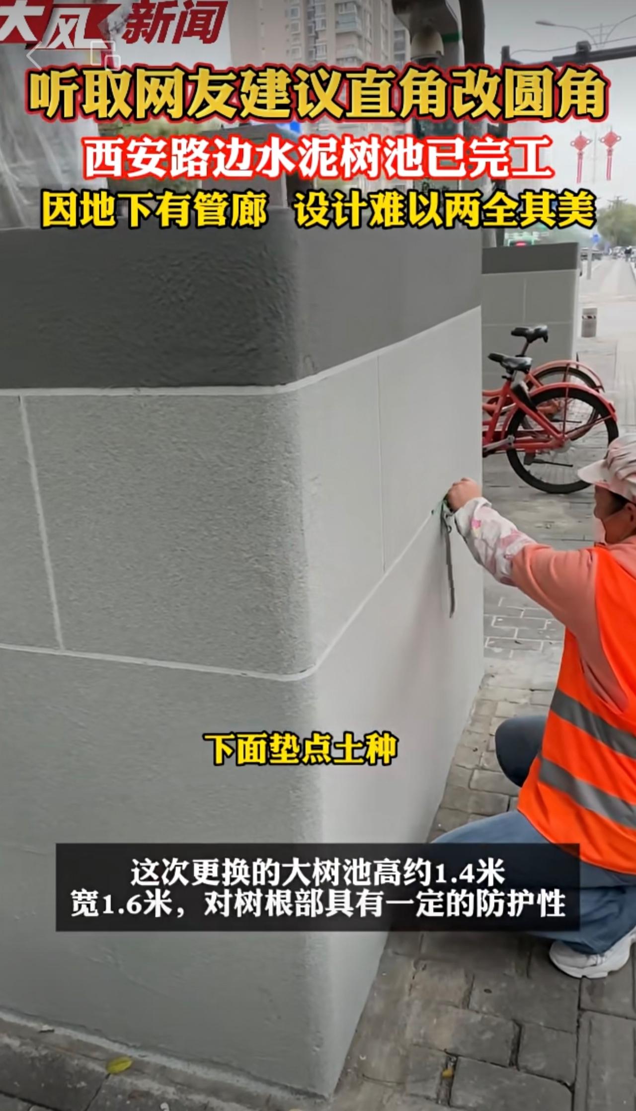 听取网友建议直角改圆角路边水泥树池已完工因地下有管廊设计难以两全其美西安
