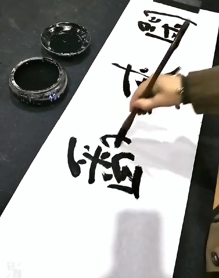 刚才刷到一个视频(来源键图片标注),这是中国著名大学著名书法女博士正在写书法作品