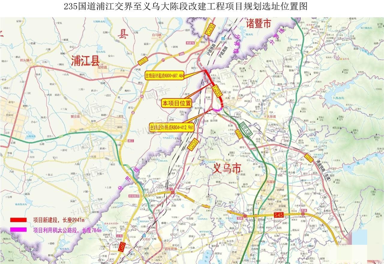 义乌国贸大道延伸工程有新动静啦!!! 近日,235国道浦江郑家坞至义乌大陈段公路