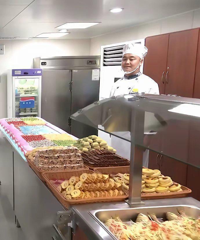这是福建舰上的伙食! 烤羊排、白灼大虾、红烧肉、虎皮蛋糕卷! 现在条件好了,部队伙食真不错,隔着屏幕都能闻到香味。 作为航母,福建舰享受的是三级军灶,标准直接对标空军,主打一个丰富多样、食材新鲜。 有这样的后勤保障,官兵们战斗力肯定杠杠的。