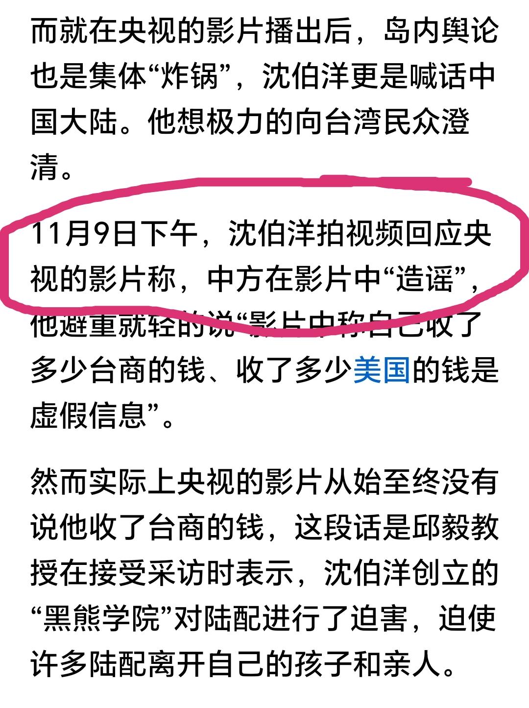 沈伯洋是真怕了。中央台给了8分钟的专题来揭开他的画皮。他居然回应说“造谣”。 难道这些不应该算是他的战绩吗? 更说明他为台毒事业的努力吗? 他不更应该为此而感到骄傲吗? 怎么第一时间就说我们在“造谣”呢? 难不成你的意思是自己拿了美国CIA和民进党的钱却并没有干那些事,就是单纯想骗他们的钱?[奸笑] 这事儿越来越有趣了,要么我们会抓一个台毒分裂分子,要么我们会抓一个诈骗犯。 来,沈伯洋,你自己选一个。[偷笑] 点右上角关注我,我们一起去看这个魔幻的世界