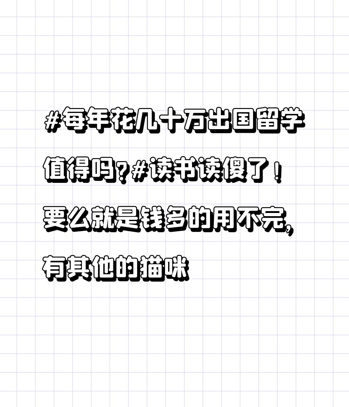 每年花几十万出国留学值得吗? 每年花几十万出国留学值不值,这事儿得从多方面看。现在留学热有所降温,2023年印度就超越中国成了美国最大国际学生来源国。有人觉得这是读书读傻了或钱太多,也有一定道理。 像赴美留学,一年学费加生活费至少60万。而且现在签证还麻烦,不少人签证都过不了。还有就业问题,“留学几百万,回国五六千”不是没可能。本硕海外名校的小南投100多份简历,面试比例才10%左右。 不过要是自身积极规划,留学也能开阔眼界学知识。所以不能一竿子打死,得看个人情况和需求。