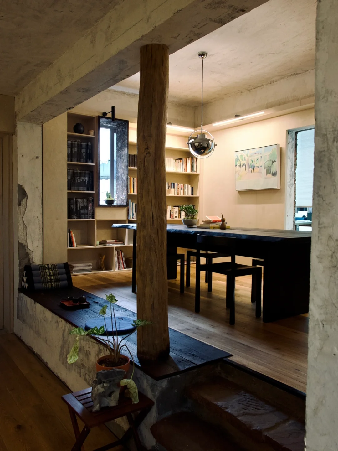 因为强哥也是做设计的,整个空间自然,工业又有格调,其中大块石地板用的是四川特有红砂岩,部分木板还是用的山西榆木,墙面是原白墙铲平,做了防尘的处理。因为室外小院做高处理,室内会有高低错落感觉,书店高低连接处还有踏脚石🪨,满满细节啊。室内小景装饰,多数都是强哥从国内外展览买回来的。店里还有彝族歌手莫西子诗的《月光白得很》签名专📀(18年很喜欢的专辑),还是To签!后面聊天才知道,强哥和莫西是朋友!莫西也来过这家书店很多次!希望下次来偶遇莫西。