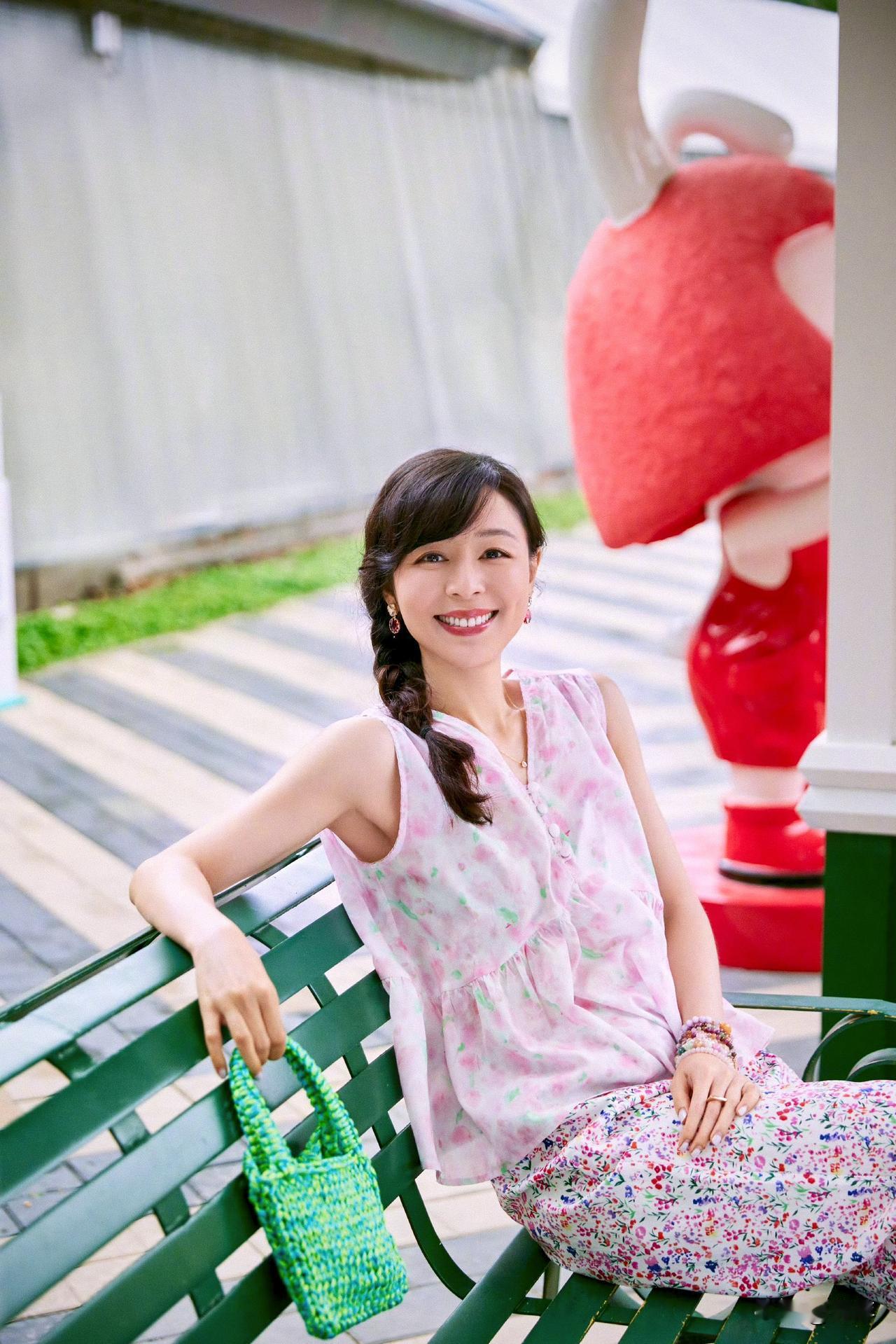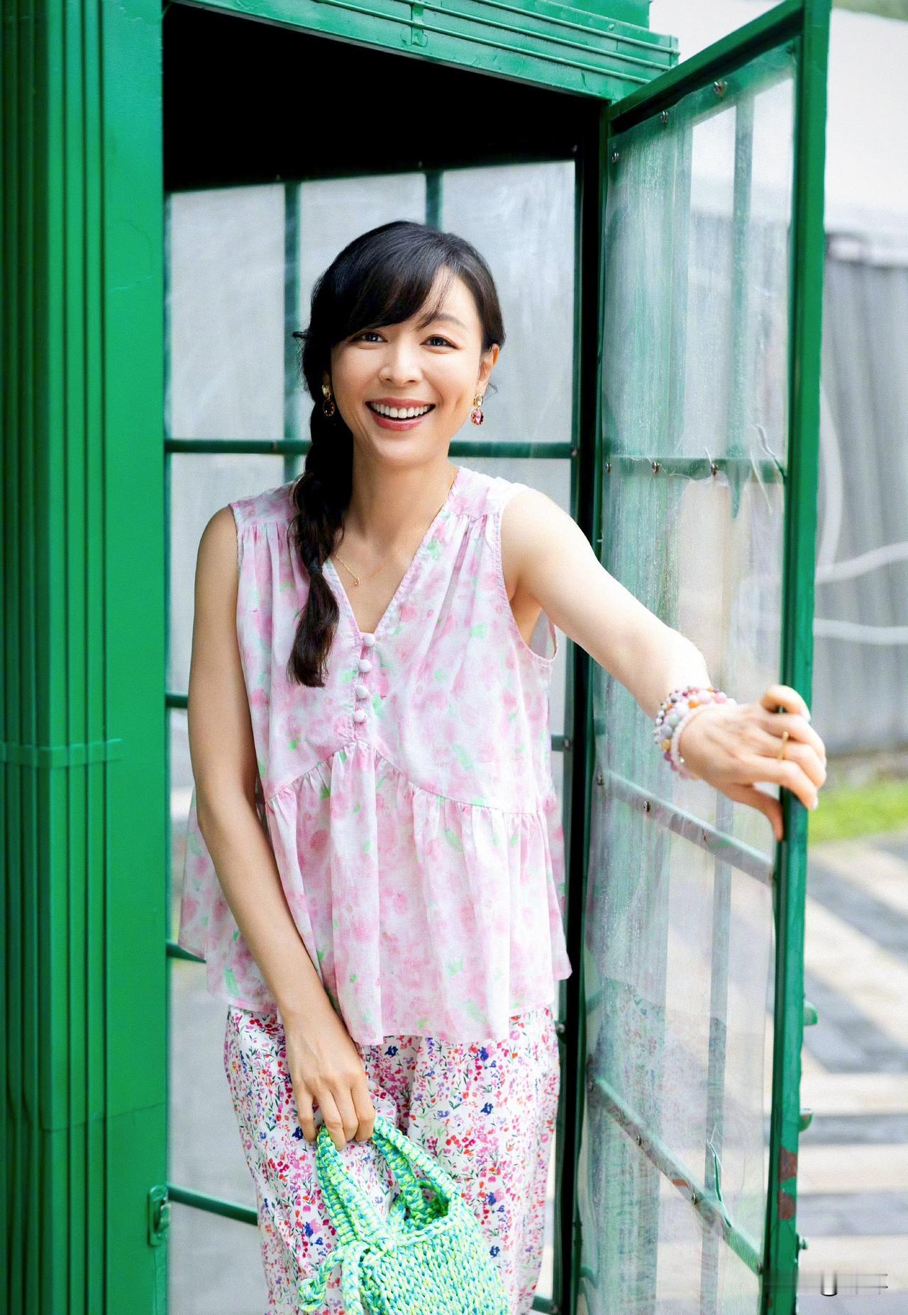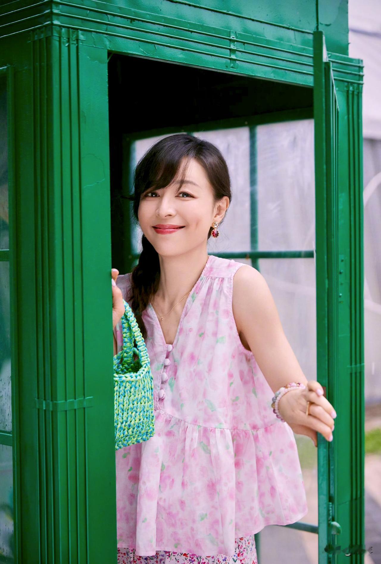 张静初身着粉嫩花衣,搭配烂漫碎花裤,笑容甜甜美美,如夏日清风般迷人。