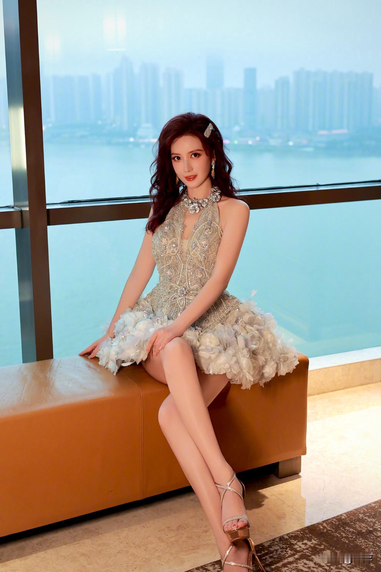 张萌的小细腿纤细匀称,搭配银钻短礼服,在都市景观映衬下,身姿曼妙,每一处线条都尽显优雅妩媚,美得耀眼又动人。