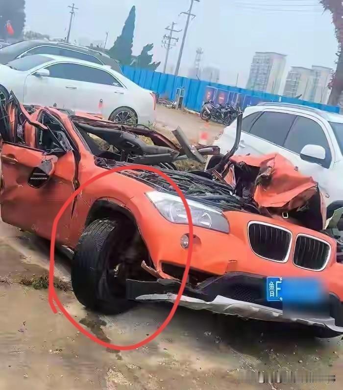 山东烟台货车翻车事故来看, 宝马车主最后被清理出来的汽车残骸, 轮胎仍旧打着