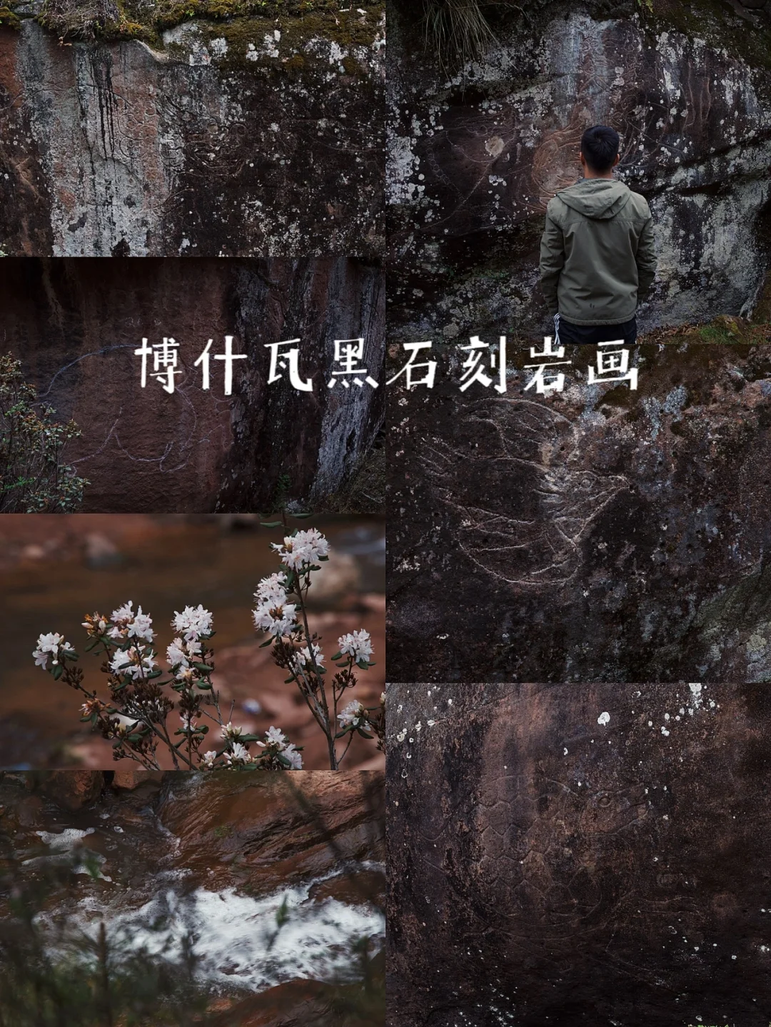 谷克德附近还有一个超级冷门国保级古迹-博什瓦黑岩画🗿,喜欢古迹历史的朋友可以去看看,下午可以顺道安排(开车过去半个小时左右),博什瓦黑,彝语为“神像画下的岩洞”之意。唐代南诏时刻绘,距今差不多有1200多年了🤩,岩画刻在16块岩壁上,共17组27幅,总面积1440平方米。阴刻画面,有释迦牟尼🪷、观音、如来佛、四大金刚诸佛及麒麟、狮🦁、龟🐢、象🦣等动物图像。
