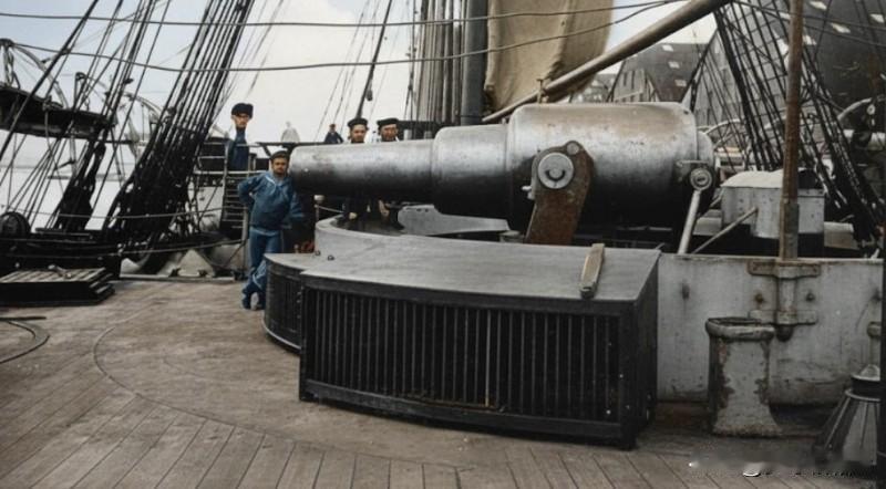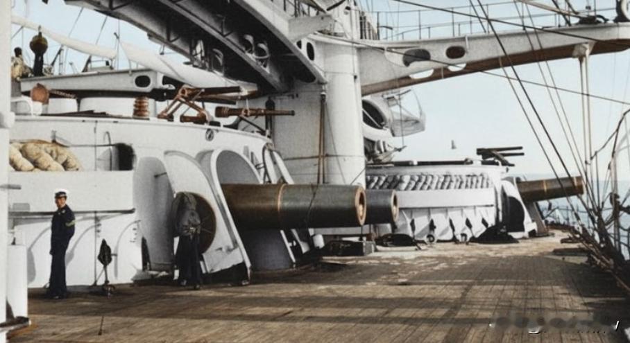十九世纪下半页对军舰设计师来说真是一个疯狂的时代,因为当时的军舰设计师已经不再满足把280-305毫米的火炮安装在军舰上,后来,在1876年下水的罗马军舰““卡约·杜伊利奥”号上面,军舰设计师干脆给改舰安装了450毫米火炮(图3)。 但是如此大口径的火炮并没有给“卡约·杜伊利奥”号带来技术上的优势,因为该舰的450毫米火炮射速是惊人的六分钟一发,加上这种火炮需要35个人来伺候,这都意味着“卡约·杜伊利奥”号的450毫米火炮没有实际上的军事价值。