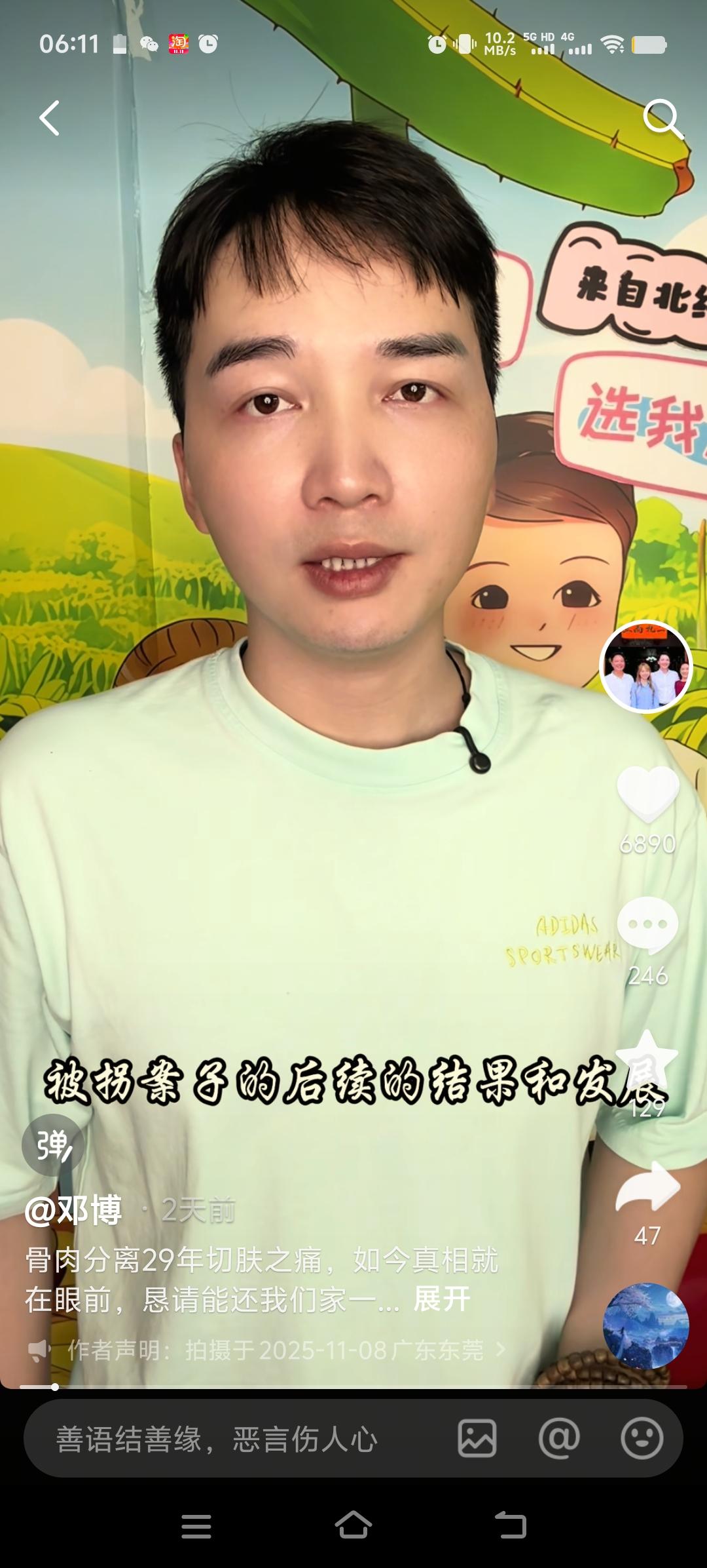 邓博被拐29年,回归家庭后,深切体会到了亲情的温暖,同时也始终关注着自己被拐案子的进展。这不,邓博收到了大竹警方寄来的一封信,警方也在积极推进这起案件,期望早日将坏人绳之以法,给被拐家庭一个公道。 像杨妞花、姜甲儒、孙卓等被拐孩子,也都通过法律途径来维护自身合法权益,绝不能让坏人逍遥法外!