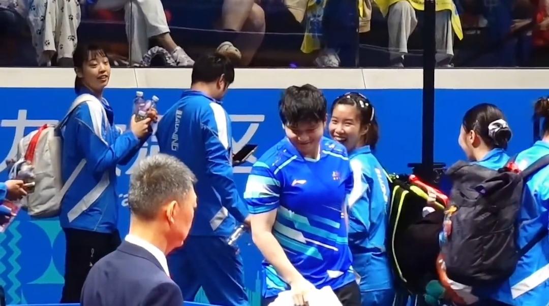 快看!樊振东脸红了。 东哥刚打完比赛, 一群青年队的女队员, 正好在东哥场边经过, 她们主动和东哥打招呼。 看这群青春洋溢的年轻队员, 东哥仿佛也年轻了, 不知道一个队员说了什么? 东哥居然脸红了。 哎,年轻真好, 东哥在这边年龄, 也曾霸气十足,活力满满!