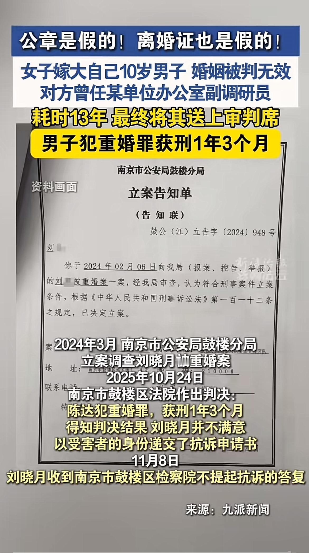 这女子嫁给10岁男子的事儿,婚姻无效那是必然的。毕竟10岁哪能承担起婚姻的责任,这违背常理和法律。而她耗时13年上诉,不知道这13年里经历了多少波折。最后男子获刑1年3个月,这也算是给这件离谱事儿一个结果。 就像福建那个重婚案,男子郑隆一开始被判重婚罪,后来又改判无罪,还获得法院登报道歉和国家赔偿。可见法律有时候也会有偏差,但最终能纠错。婚姻无效判决通常不能上诉,不过相关财产、子女问题可以另诉,这也是为了合理解决后续争议。